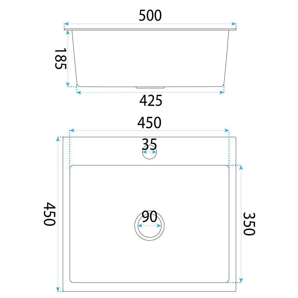 Rea Leo, 1 rekeszes acél mosogató 500x450x185 mm, acél, ZLE-06003