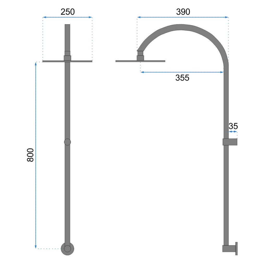 - Esőzuhanyfej: rozsdamentes acél, fekete, átmérő 250 mm
