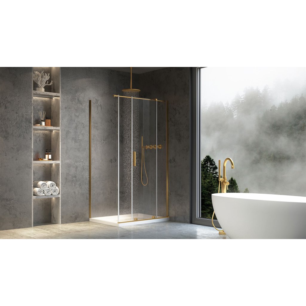Rea Montana, tolóajtós zuhanykabin 120x90cm, 6mm átlátszó üveg, arany matt profil, KPL-K2511