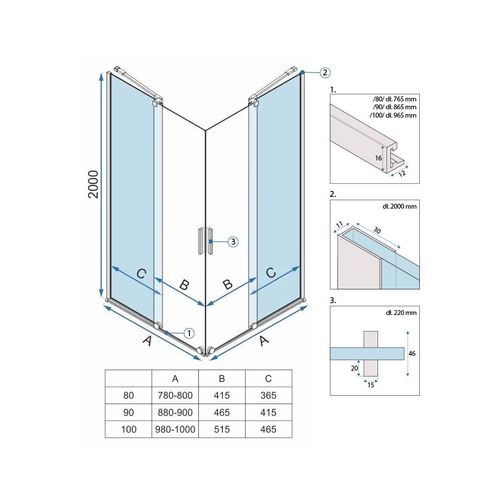 | Típus: | Rohový - 2-stranný, posuvné dvere |
