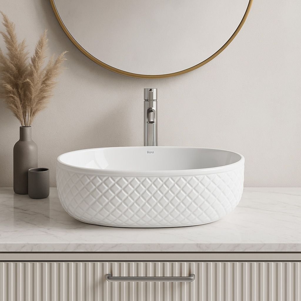 Az Oktawia mosdó azoknak készült, akik egyedi és stílusos megoldásokat keresnek fürdőszobájukba. A legmagasabb minőségű szaniter kerámiából készült, amely hosszú évekre garantálja a tartósságot és az esztétikus megjelenést. A modell jellegzetes tulajdonsága a dekoratív, dombornyomott külső felület, amely kivételes jelleget kölcsönöz a mosdónak, és belső dekorációvá teszi. Az ovális forma ergonómiát és kényelmes használatot biztosít, míg a mély medence minimalizálja a víz fröccsenésének kockázatát. Az Oktawia mosdó munkalapra vagy szekrényre szerelhető, így könnyen illeszthető a különféle fürdőszobai elrendezésekhez.