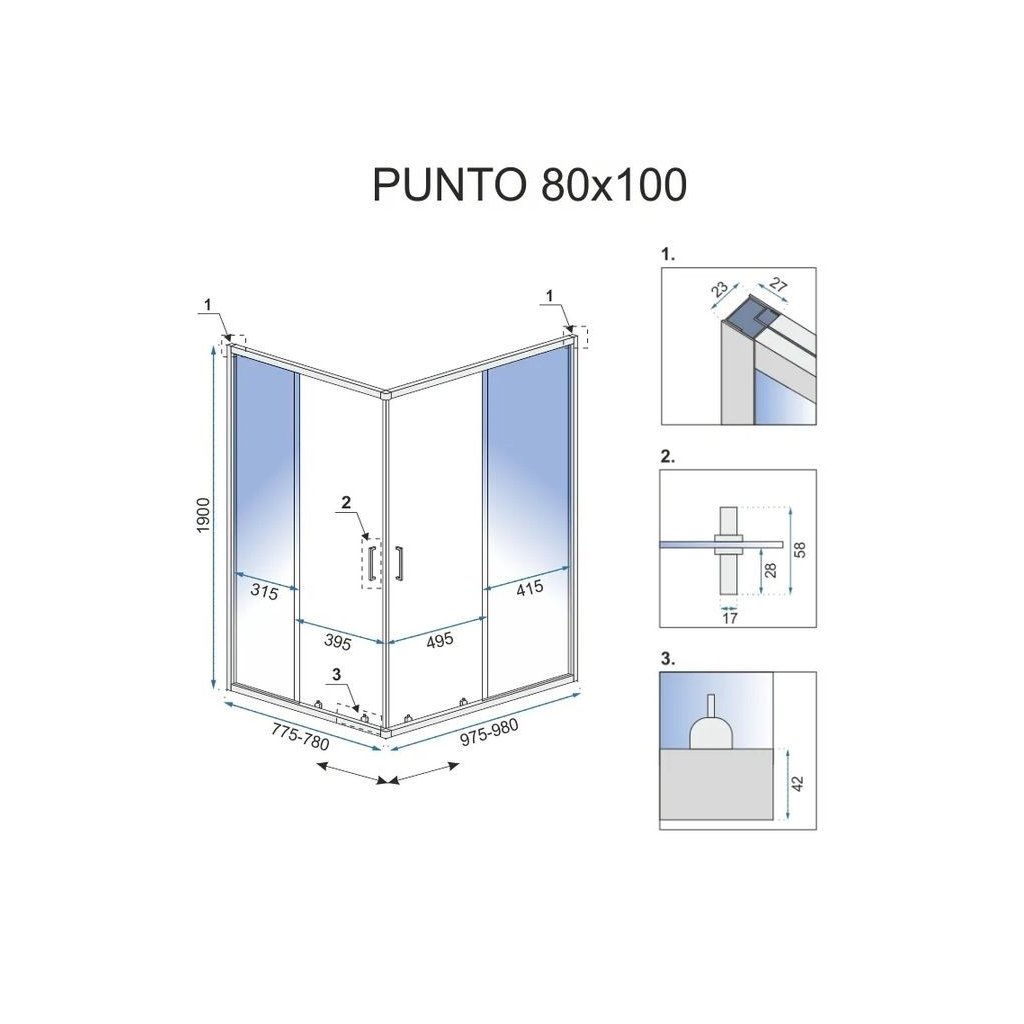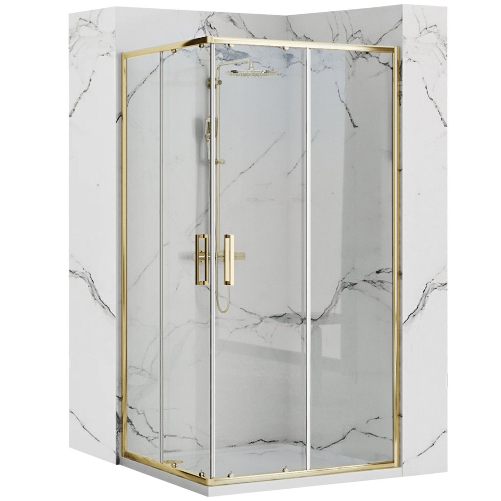 Rea Punto, zuhanykabin tolóajtóval 80 (ajtó) x 100 (ajtó) x 190 cm, 5mm átlátszó üveg, arany fényes profil, REA-K6442