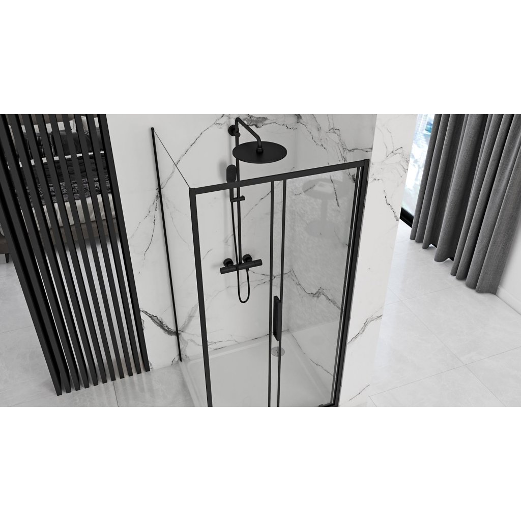 Rea Rapid Slide - zuhanykabin tolóajtóval 150 (ajtó) x 80 (fal), átlátszó üveg, fekete profil, KPL-09868