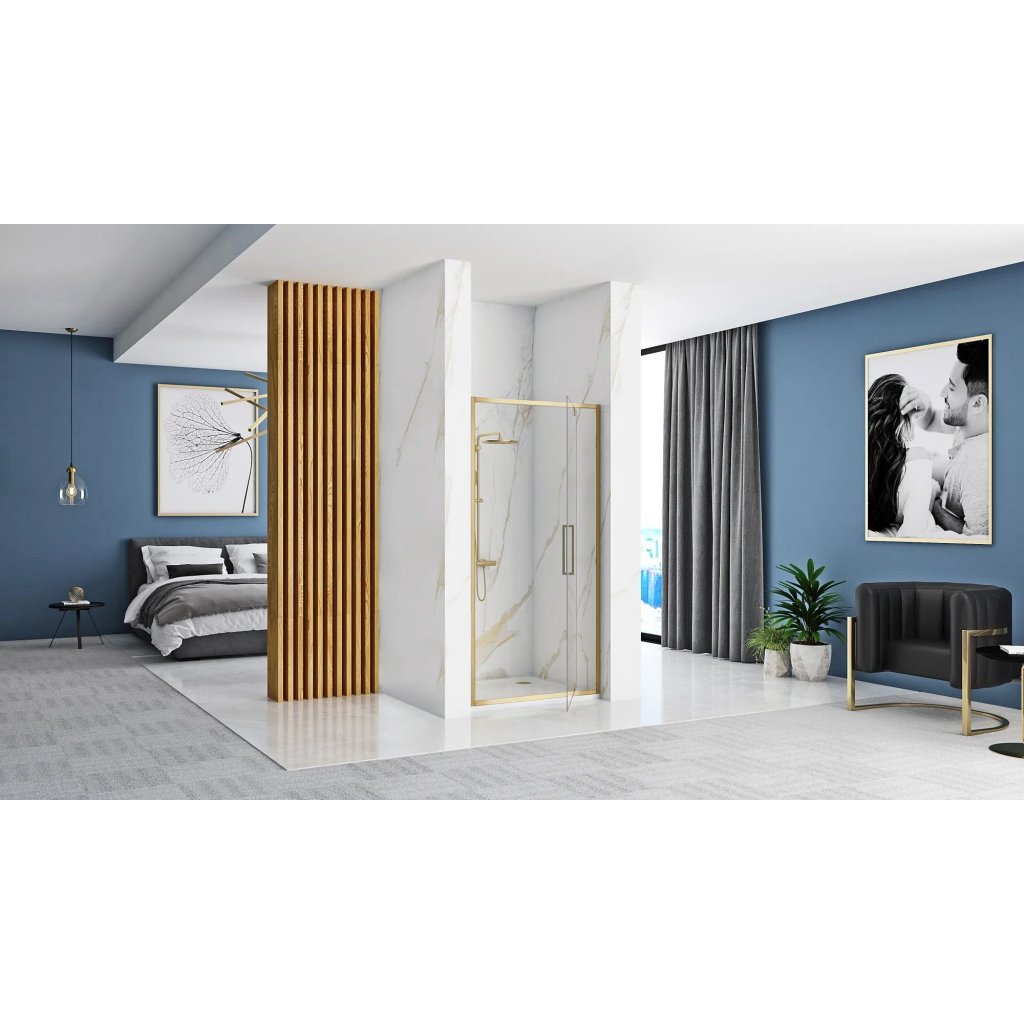 Rea Rapid Swing, 1-szárnyú zuhanyajtó 900x1950 mm, 6 mm átlátszó üveg, arany matt profil, REA-K2502