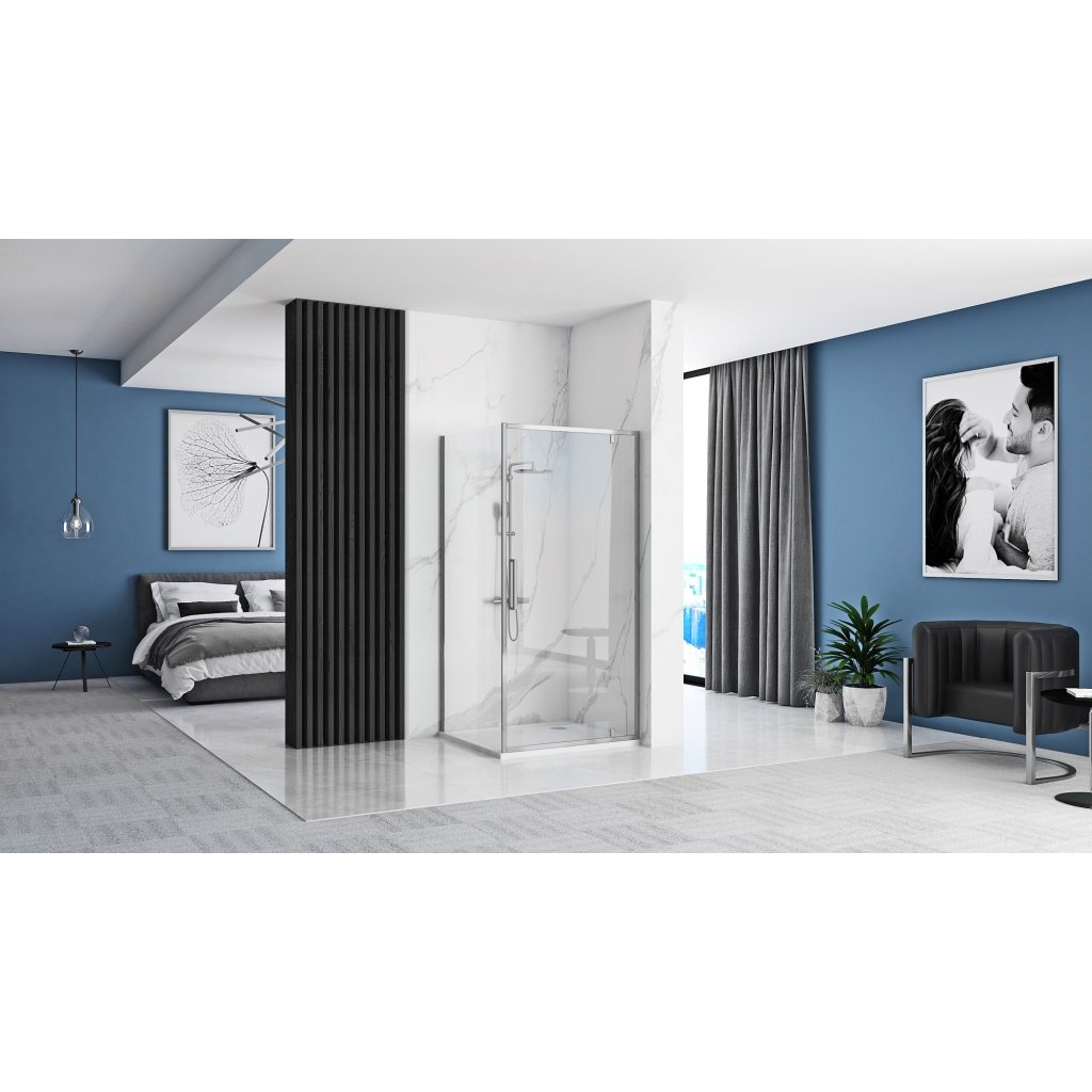 Rea Rapid Swing, sarok zuhanykabin 90 (ajtó) x 100 (fal), 6mm átlátszó üveg, króm profil, KPL-K3606