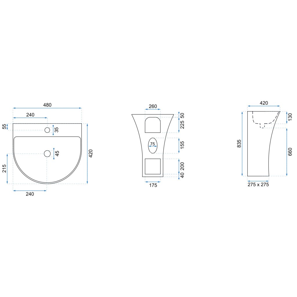 Rea Rita Slim, szabadon álló mosdókagyló 480x420x835mm, fehér fényes, REA-U9901