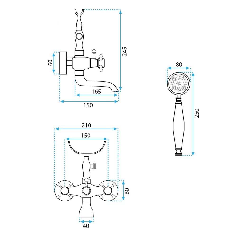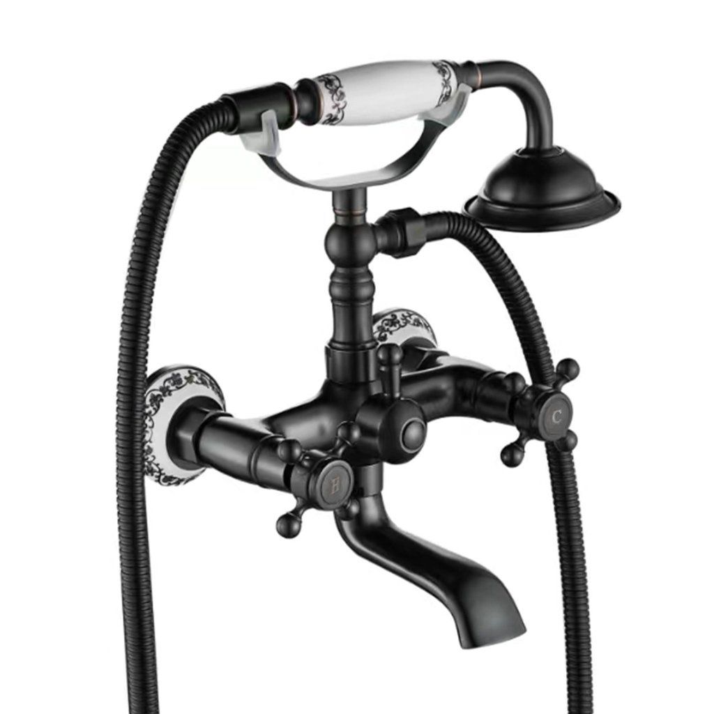 Rea Rustico, fali kádcsaptelep kézizuhany készlettel, retro fekete, REA-B0701