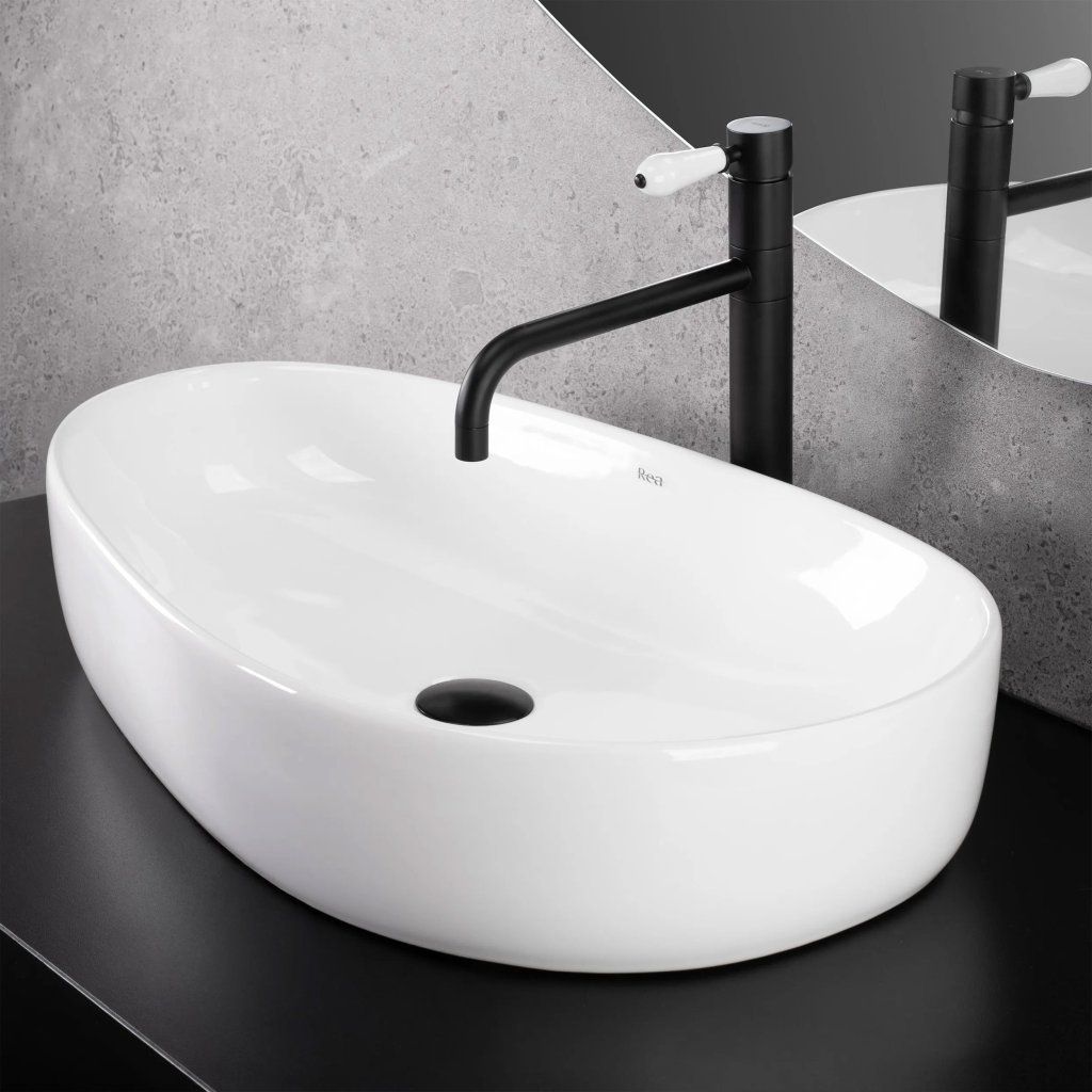 Rea Sandra, pultra szerelhető mosdó 650x400x130 mm, fényes fehér, REA-U8423