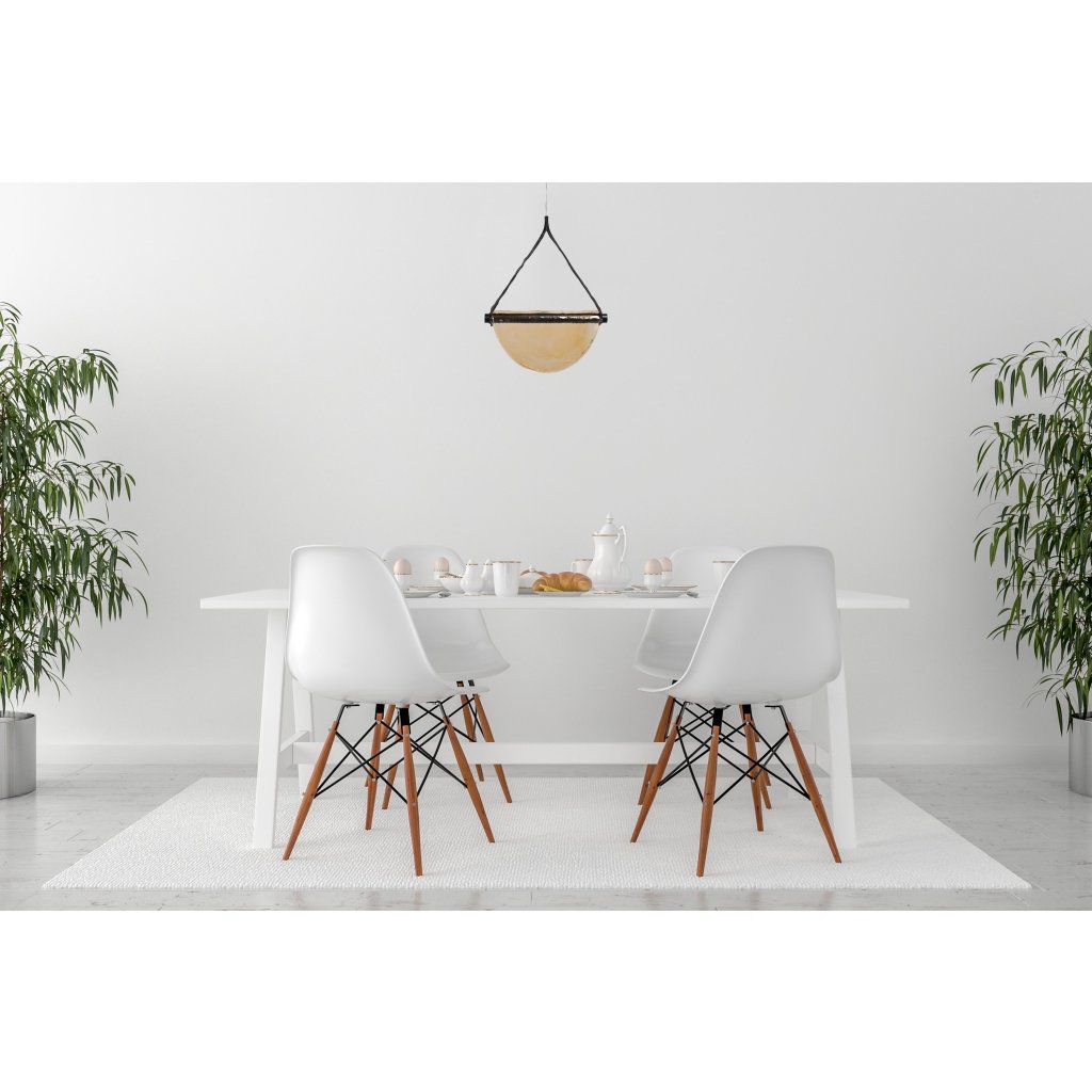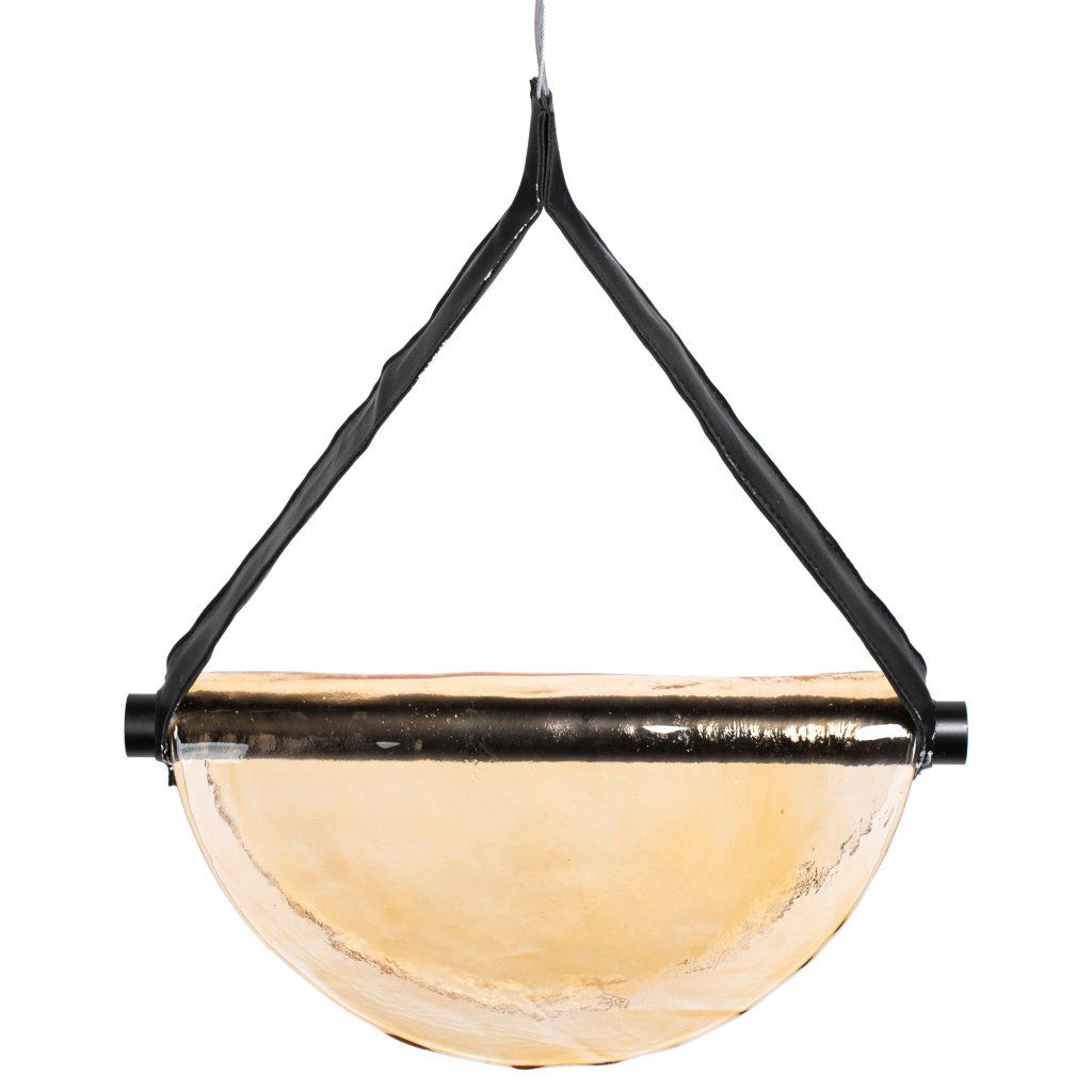 A lámpa alumínium válaszfalból készült, mely alá LED szalagok vannak rögzítve, melyre egy félkör alakú üvegbúra van rögzítve, mely átlátszóságának köszönhetően LED fénnyel kombinálva nagyon kellemes fényt biztosít. Minden egy elegáns bőrszíjjal lett befejezve, aminek köszönhetően az egész nagyon eredeti és egyedi megjelenést kapott.