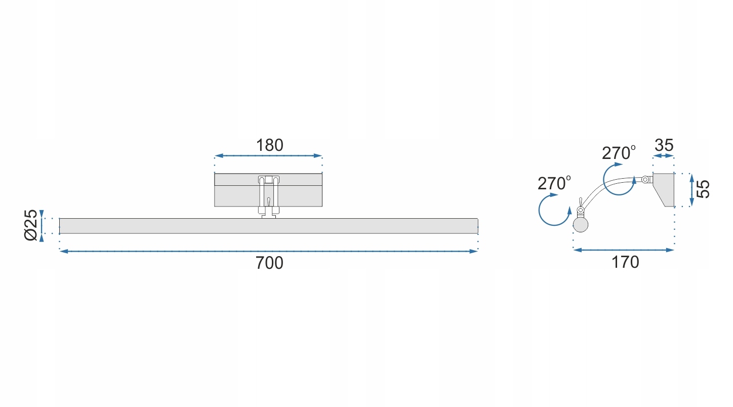 - Állítható fali lámpa kar - két ponton állítható dőlésszög