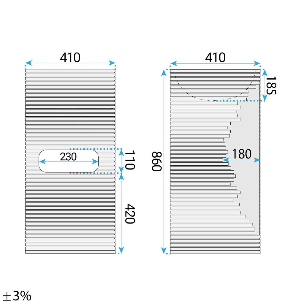 A mosdótalp hátulján egy ellenőrző nyílás található, amely lehetővé teszi a szifon és a lefolyó kényelmes csatlakoztatását. Minden műszaki elem a talapzaton belül rejtve marad – csak a tiszta kőforma látható, csövek vagy illesztések nélkül. A mosdó közvetlenül a padlón áll, falra rögzítés nélkül.