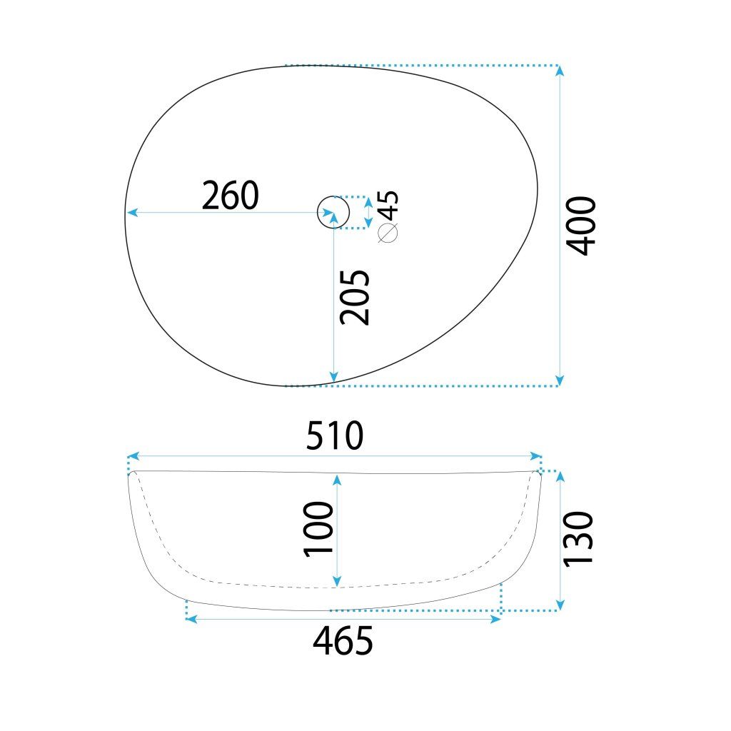 Rea Vanila, pultra szerelhető mosdó 510x400x130 mm, fényes fehér, REA-U8422