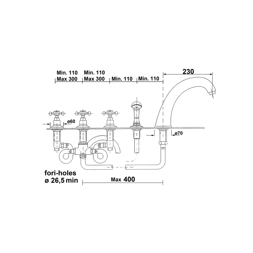 A kád szélén lévő csaptelepek bármilyen akril kádra felhelyezhetők, amelynek éle kellően széles. A csaptelep, a kifolyó és a zuhany egyben vagy külön-külön is felszerelhető bárhol a kád szélére (flexibilis csatlakozás tömlőkkel). Kombinálhatja a csaptelepeket kifolyós töltéssel, túlfolyóval vagy zuhannyal a kád szélén.