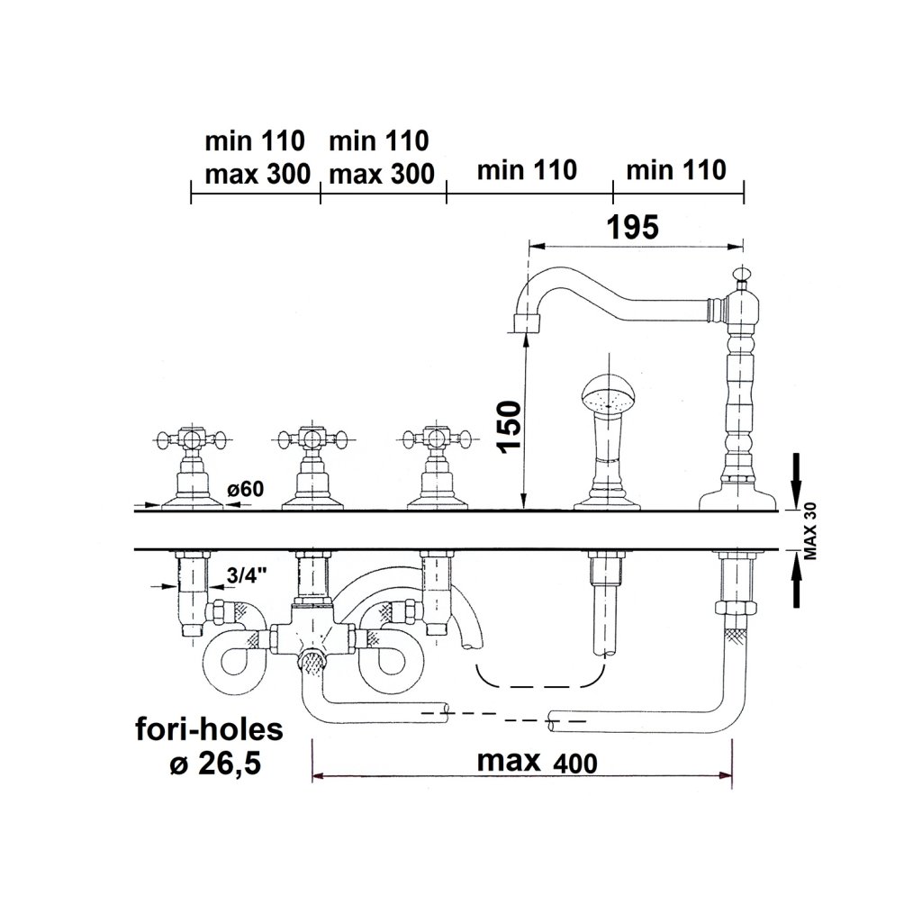 A kád szélén lévő csaptelepek bármilyen akril kádra felhelyezhetők, amelynek éle kellően széles. A csaptelep, a kifolyó és a zuhany egyben vagy külön-külön is felszerelhető bárhol a kád szélére (flexibilis csatlakozás tömlőkkel). Kombinálhatja a csaptelepeket kifolyós töltéssel, túlfolyóval vagy zuhannyal a kád szélén.
