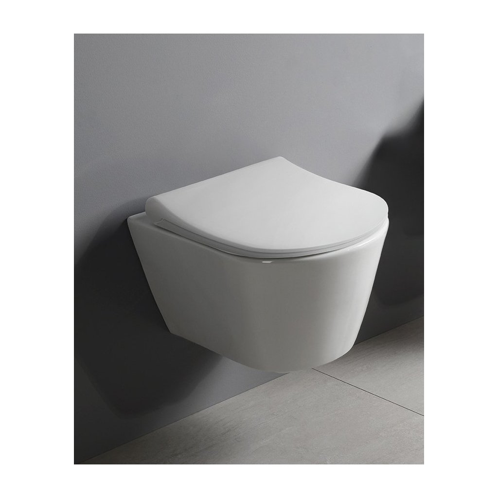 SAPHO, fali WC-csésze, 35,5 × 53 cm, fehér, perem nélküli, CleanWash zuhanyfejjel