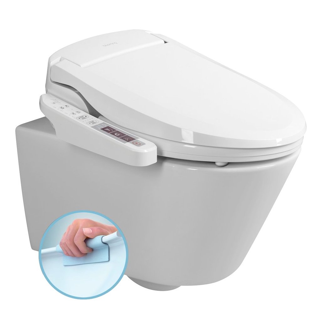 | Bidé funkció: | Bidetová a dámska tryska;Nastaviteľná poloha trysiek;Nastaviteľná teplota vody;Nastaviteľný tlak vody;Oscilačný pohyb trysky;Masážny oplach;Teplovzdušné sušenie;Vyhrievané sedátko;Dotykový senzor v sedadle;LED nočné osvetlenie;Automatické čistenie trysiek;Úsporný režim v stand by |