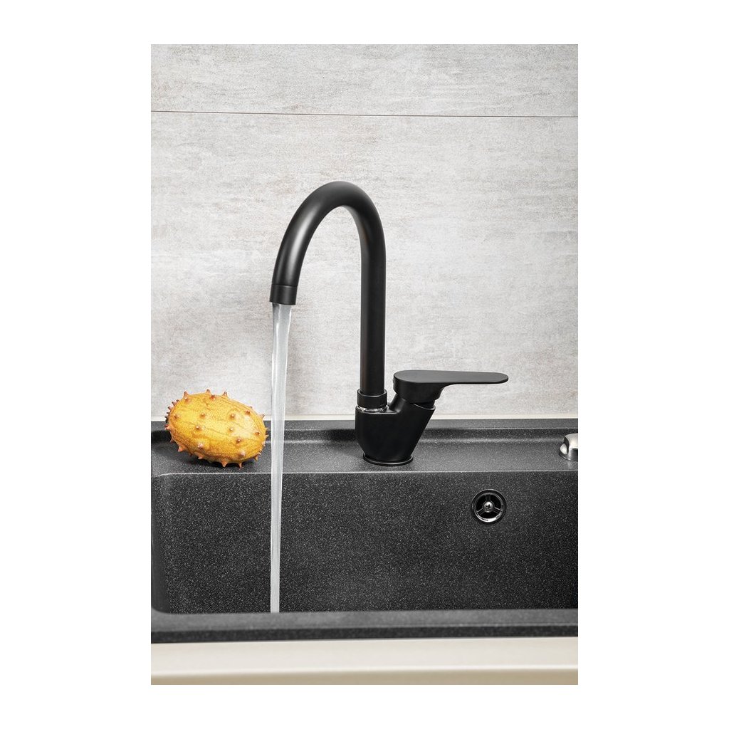 A CORNELI álló mosogatócsap magas kifolyóval, matt fekete kivitelben, modern megoldást kínál konyhákba, háztartási helyiségekbe vagy vendéglátóhelyekre. Közvetlenül a munkalapra vagy a mosogatóra szerelhető, és a magas kifolyónak köszönhetően rengeteg helyet biztosít az edények, edények és nagyméretű tartályok kezeléséhez. Az elegáns matt fekete kivitel időtlen prémium megjelenést kölcsönöz a belső térnek.