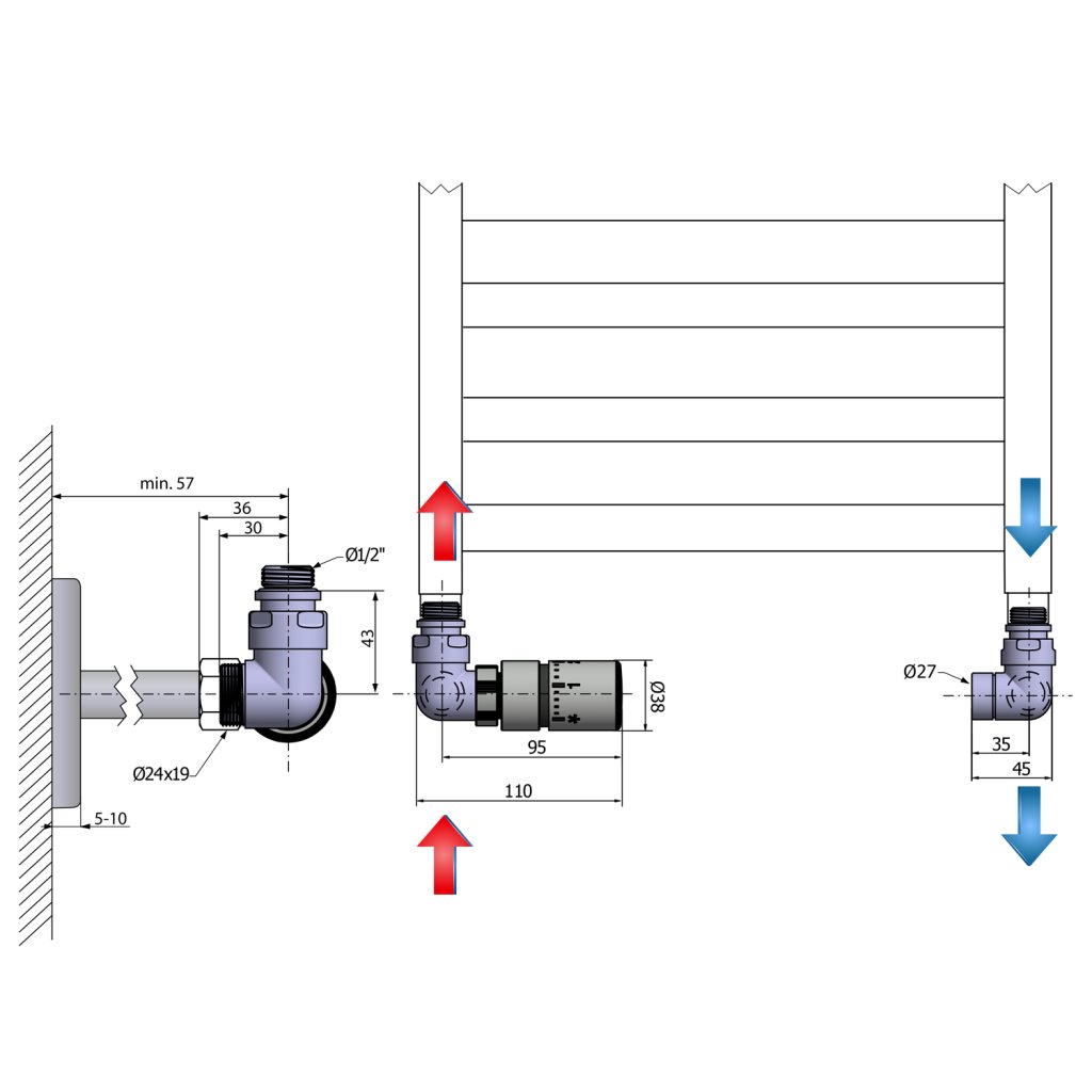 Központi fűtés esetén fontos a szelepek csatlakozókészletének kiválasztása. Választható kézi szelep vagy termosztatikus fejű szelep használata.