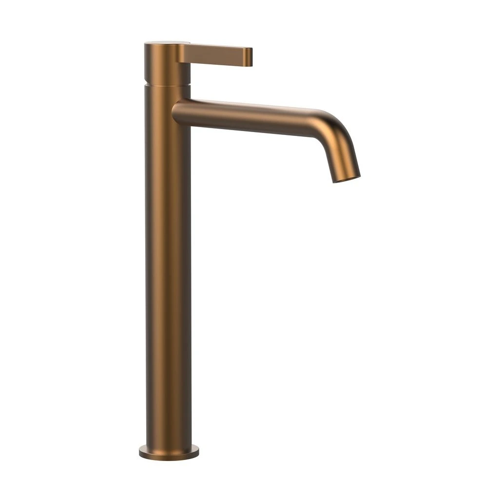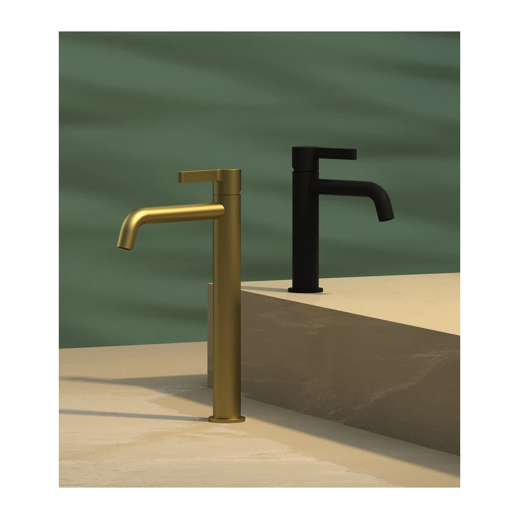 Az ICONIC sorozat magas mosdócsaptelepe matt réz színben a modern luxus és az ipari elegancia megtestesítője. Magasságának és karcsú, kerek kialakításának köszönhetően kifejezetten pultra helyezhető mosdókagylókkal kombinálható, ahol domináns esztétikai elemet alkot. A matt réz felület meleg, fémes akcentust kölcsönöz a fürdőszobának, amely rendkívül stílusosnak tűnik természetes anyagokkal, például kővel, fával vagy betonnal kombinálva. A finoman működő karvezérlés biztosítja a vízhőmérséklet és az áramlás pontos szabályozását a mindennapi kényelem érdekében.