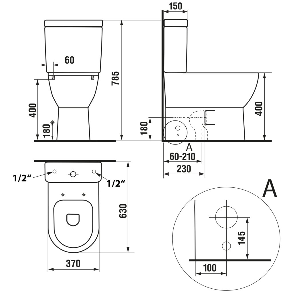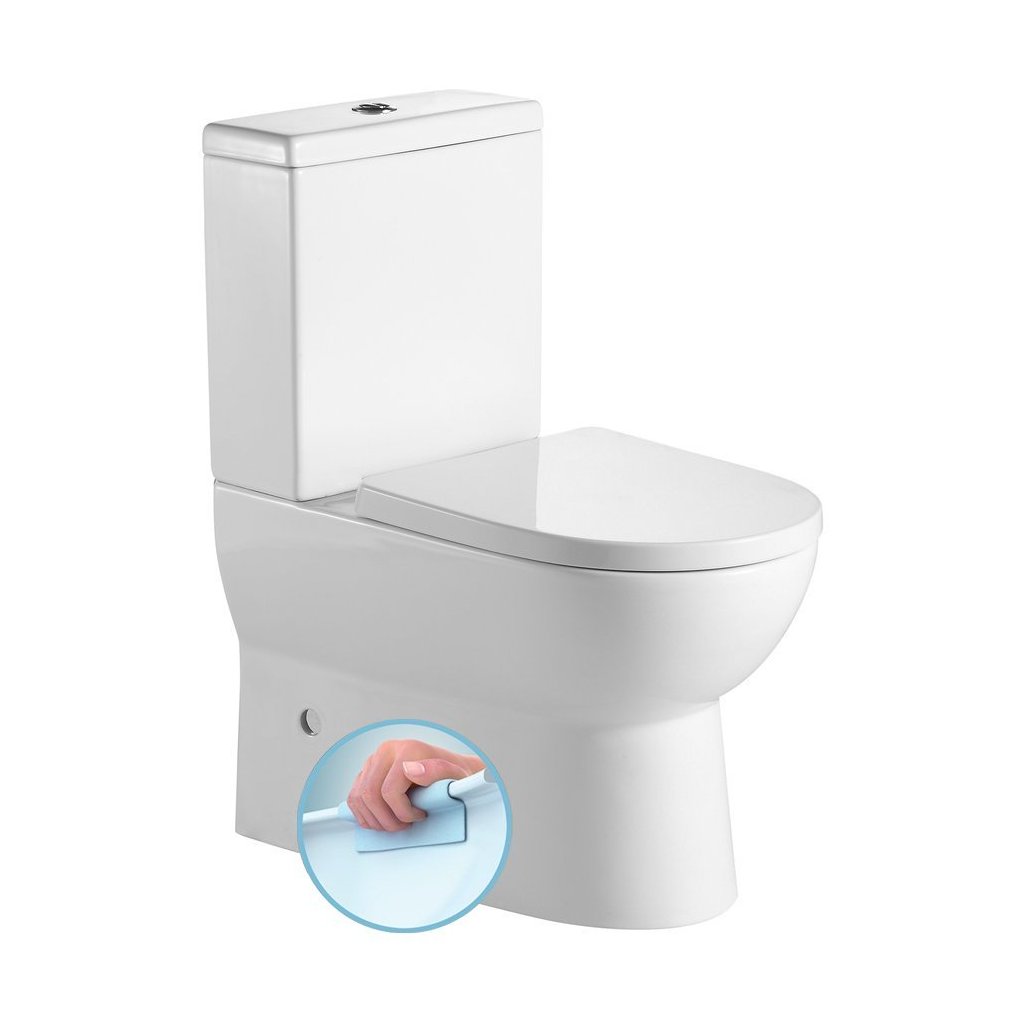 AQUALINE JALTA RIMLESS monoblokkos WC, alsó/hátsó kifolyású, ülőke nélkül, 37x63cm, duál gombos öblítőmechanika (PB103RW)
