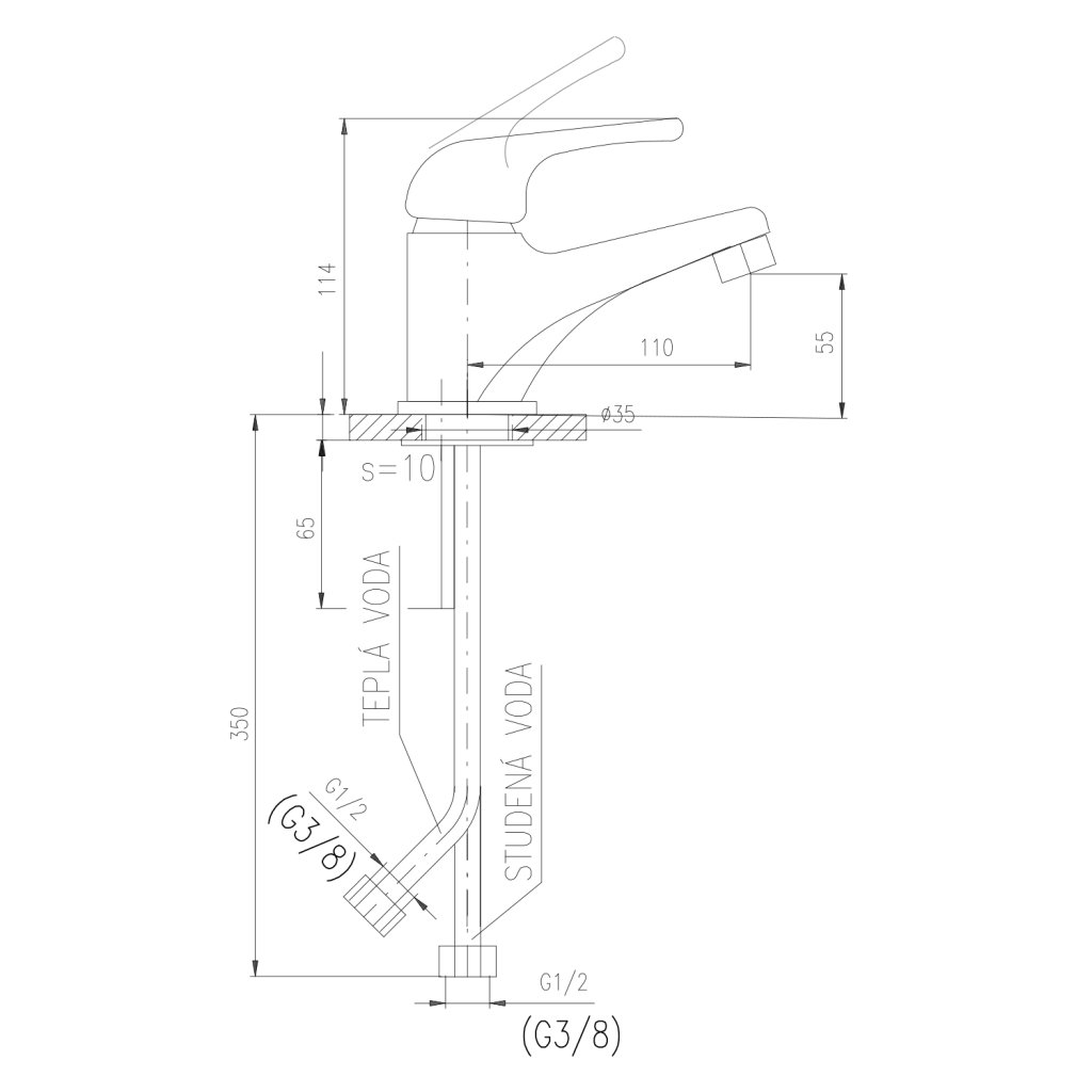 Szabadon álló karos mosdócsaptelep lefolyó nélkül