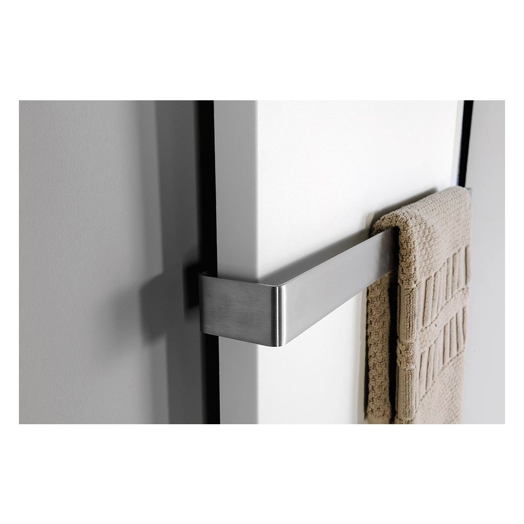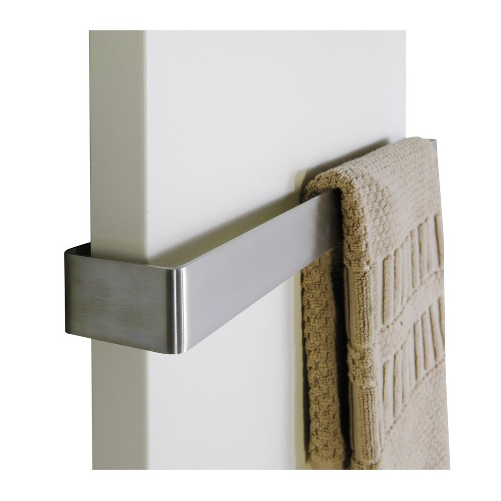 Praktikus törölközőtartó szálcsiszolt rozsdamentes acélból MAGNIFICA radiátorokhoz.