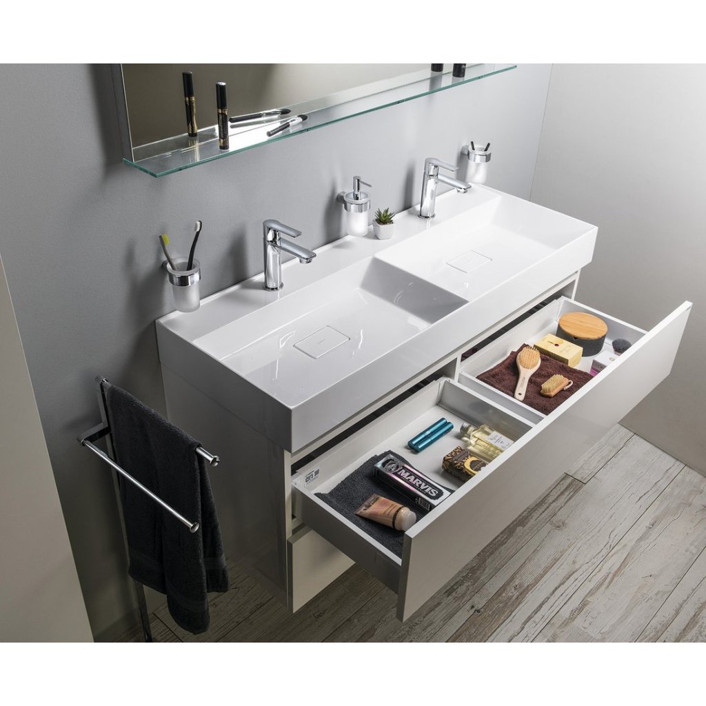 A szekrények azonos dekorációjú vagy színű NIROX tükrökkel történő kiegészítésével összehangolt egészet kaphat fürdőszobája számára. Ezen kívül a tárhely bővíthető további ESPACE szekrényekkel a készlethez.