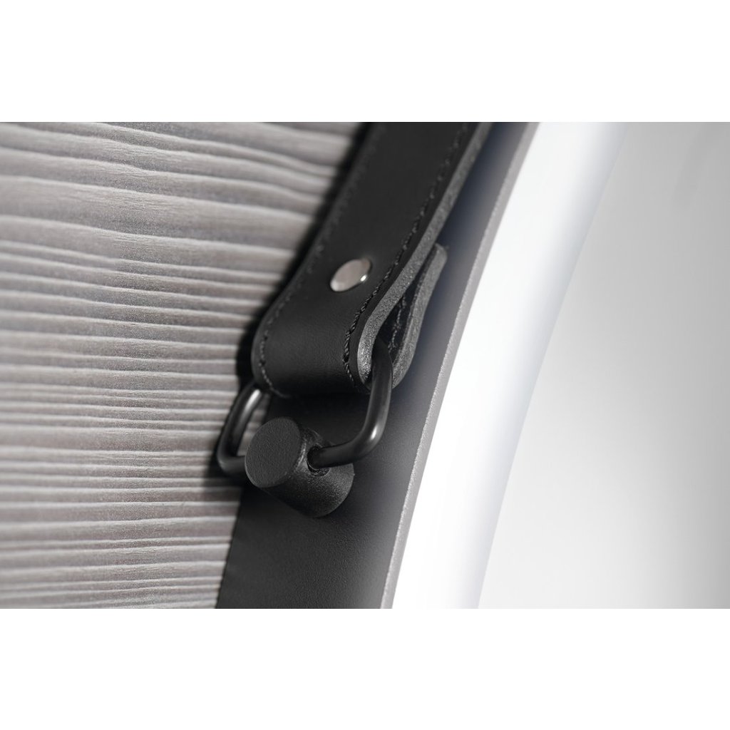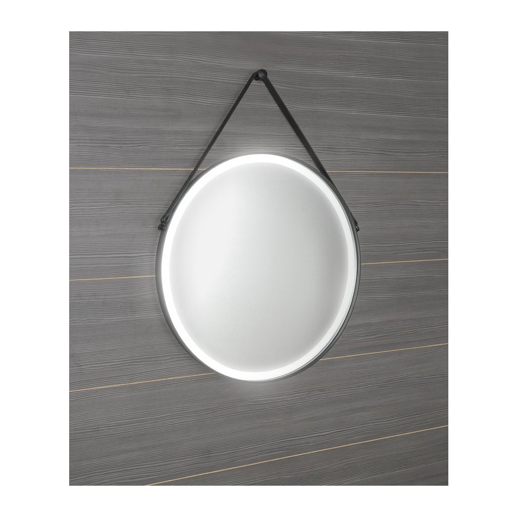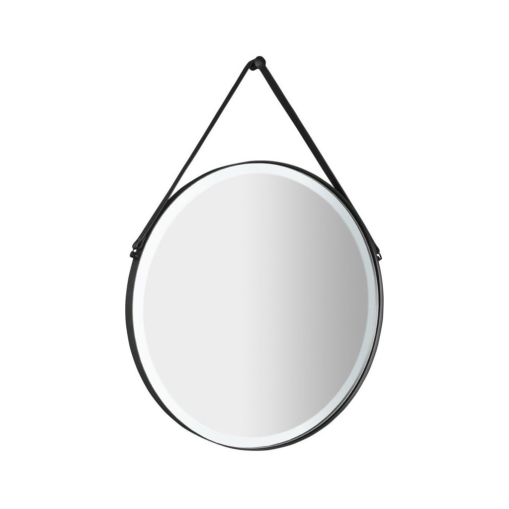 Kerek tükör bőr csíkkal, fekete keretben