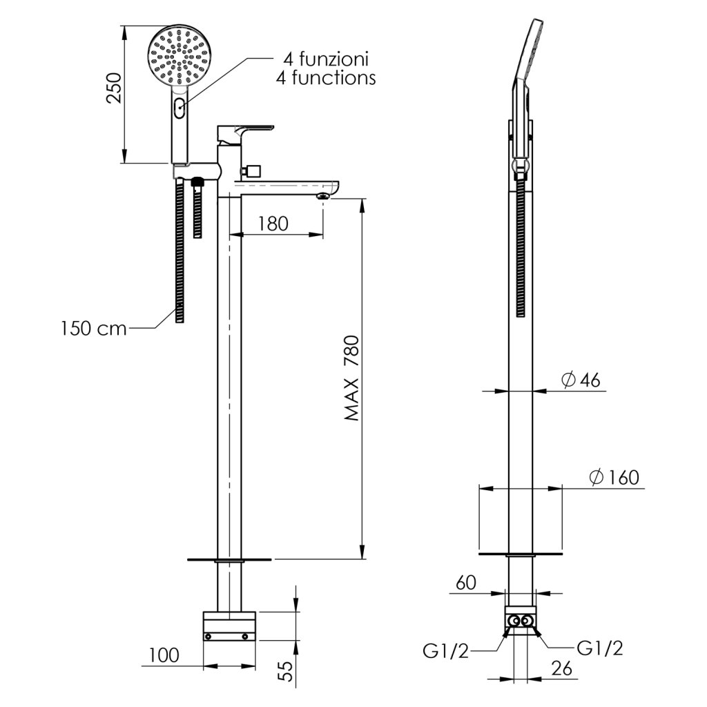 - A csomag tartalmaz egy kézi zuhanyt, egy tömlőt és egy rejtett testet a csaptelep egyszerű felszereléséhez