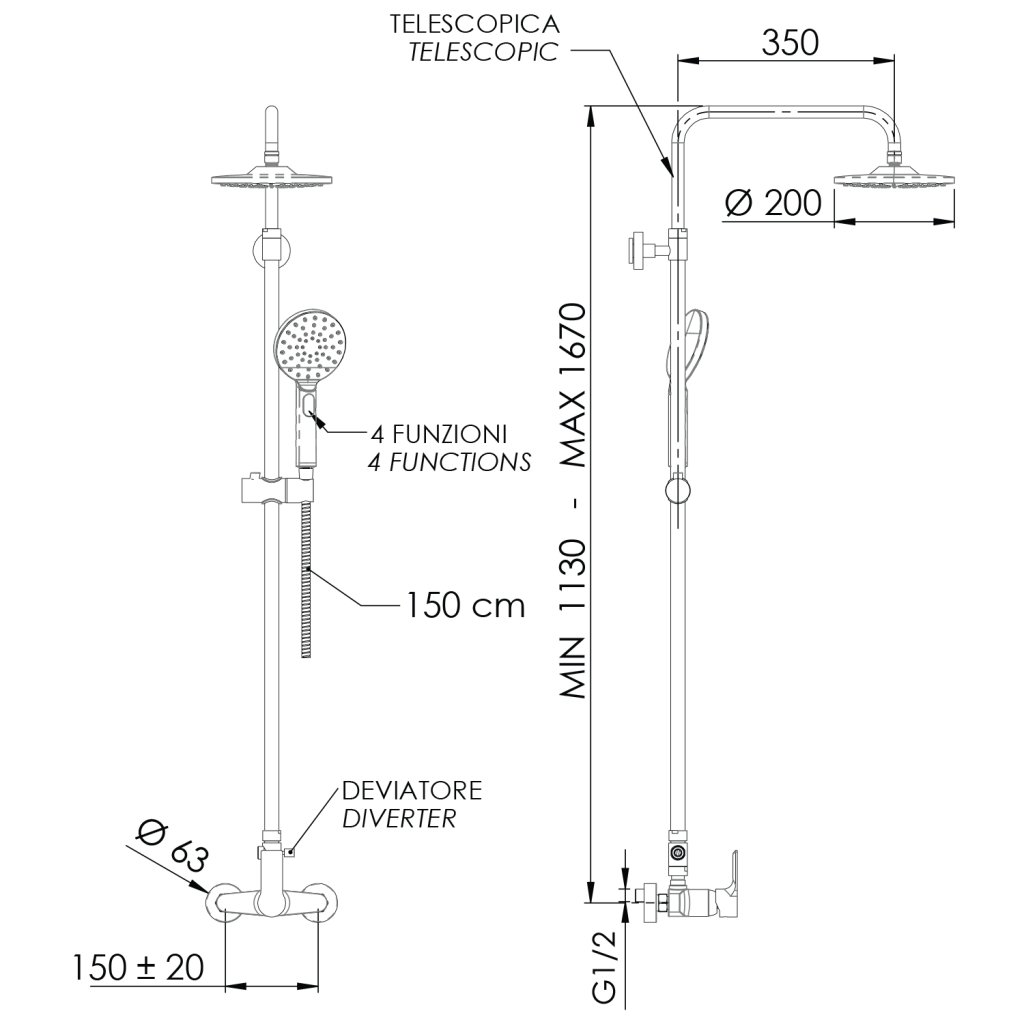 | Telepítés: | Fali, 150 mm |
