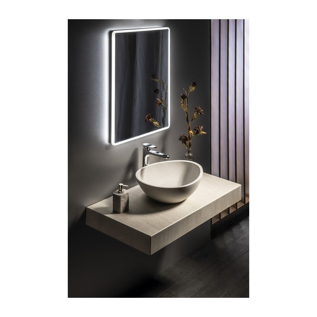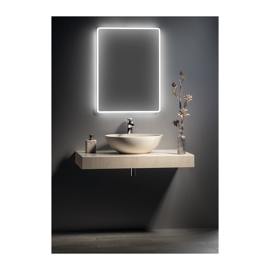 A háttérvilágítású tükrök a LED-forrásoknak köszönhetően homogén fényes, homogén fénnyel világítják meg a fürdőszobát. Hosszú élettartamuk (kb. 30 000 óra) és alacsony fogyasztásuk jelentik a fő előnyöket a hagyományos fénycsövekkel szemben. A kisugárzott fény finoman és kellemesen megvilágítja a fürdőszobát. A tükör nem tartalmaz kapcsolót.