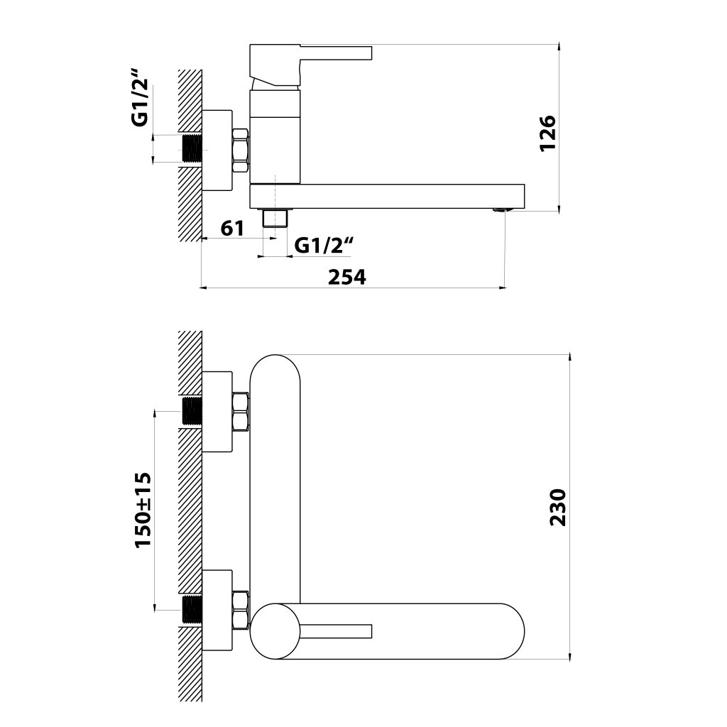 | Telepítés: | Fali, 150 mm |
