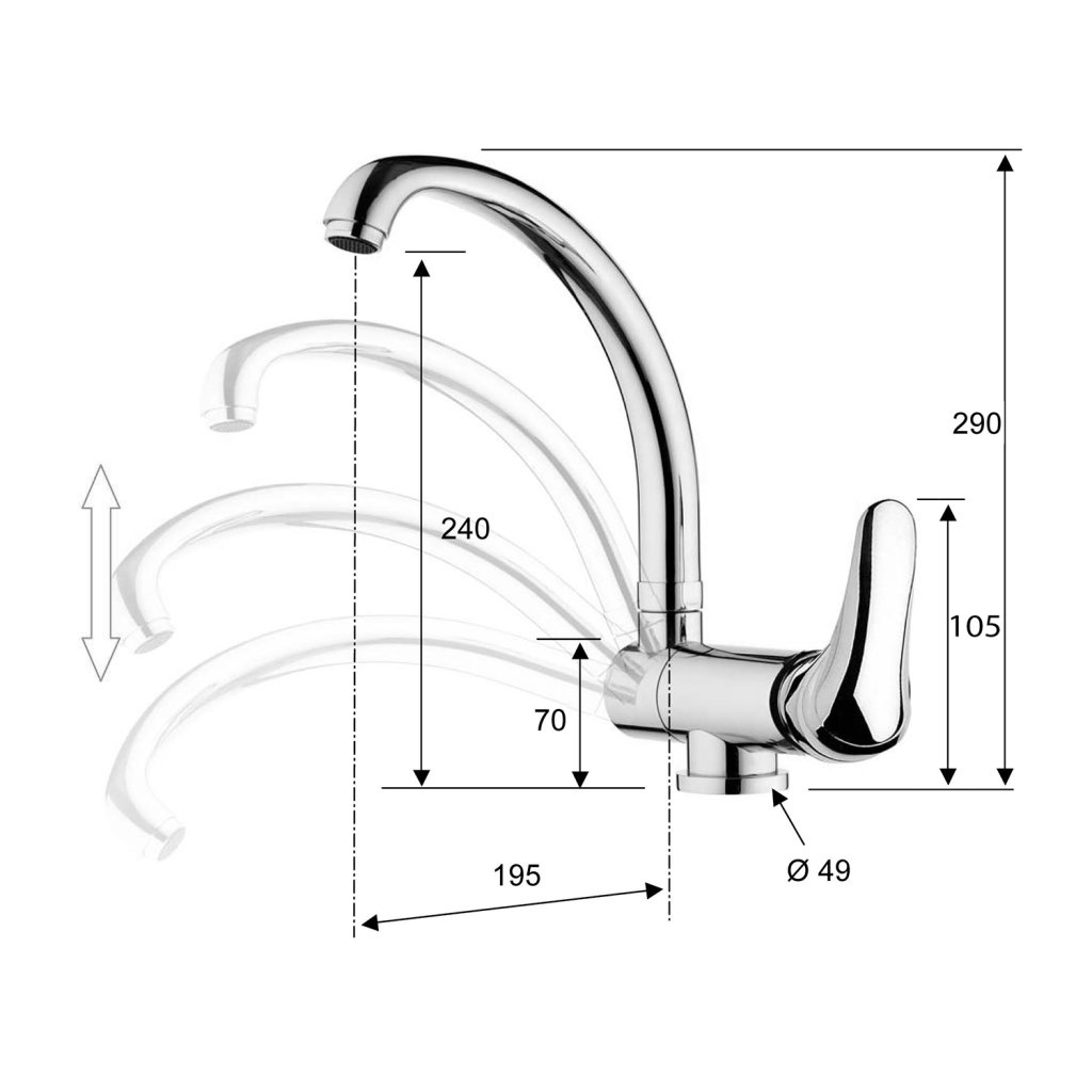 Szabadon álló mosogatócsaptelep dönthető kifolyóval