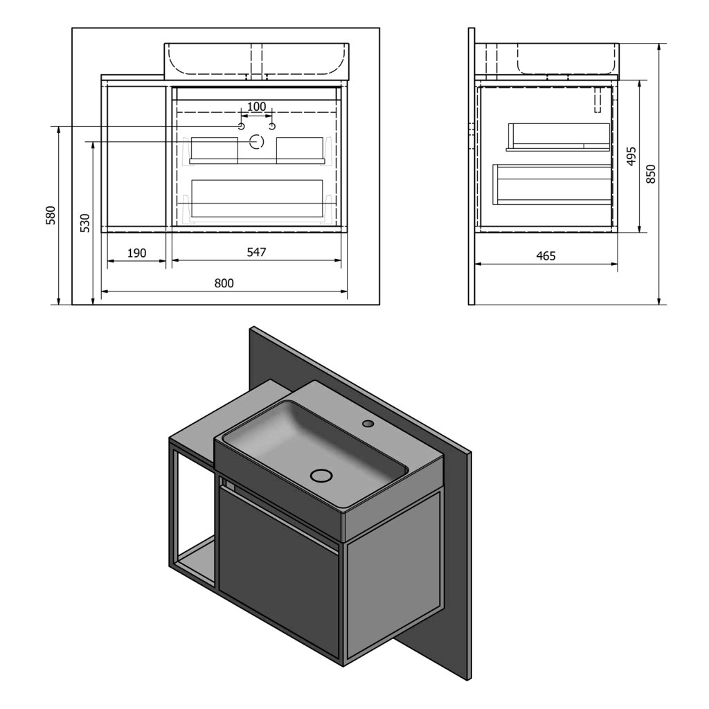 Alumínium szerkezetek a mosogató alatt integrált fiókkal – ez a SKARA. A konstrukciós profilok matt feketére festettek, a kiegészítő fiók Collingwood tölgy vagy Alabama tölgy dekorációjú laminált lapokból készült. A fiók fogantyú nélküli, ami kiemeli a mosogató szerkezetének friss dizájnját. Természetesen a fiók automatikus zárásának Soft close rendszere, amit a BLUM fiókok biztosítanak. A függő szerkezetek a fehér színű, öntött márványból készült TWIG mosogatóhoz készültek. A 80 és 100 cm széles szerkezetek aszimmetrikusak, praktikus tárolórésszel. A FORMIGO betonmosogató alá helyezhető szerkezetnek is van egy változata, melyet többféle dekorban kínálunk.