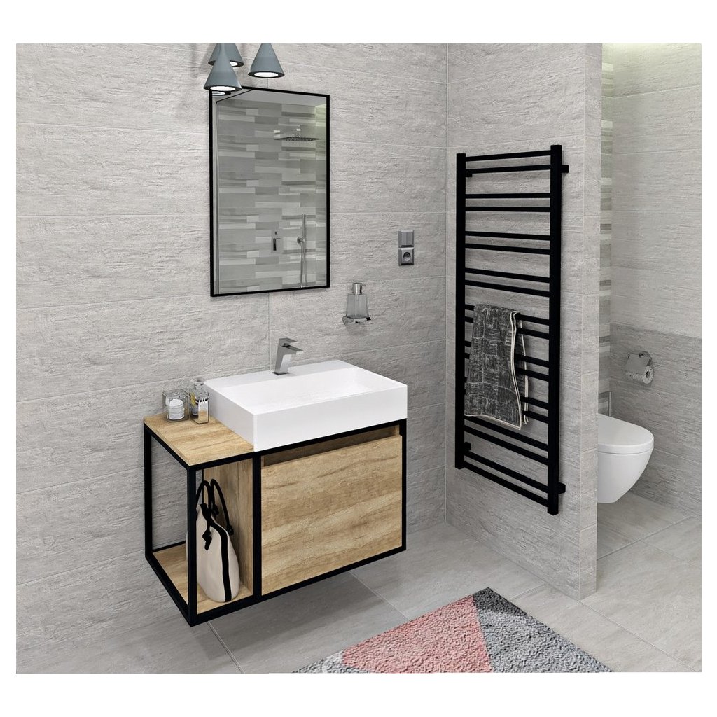 A SKARA sorozat konstrukciói modern és ipari stílusban berendezett fürdőszobákhoz egyaránt alkalmasak. A black metal hideg aspektusát ízlésesen egészíti ki egy melegítő elem a fa formájában, sötétbarna árnyalatban. A tipikus ipari koncepció a FORMIGO mosdóval megvan a megfelelő párja a TWIG mosdókagylóval ellátott finomabb változatban. A SKARA konstrukció tökéletesen kiegészíti a magas szekrényeket és a TREOS tükröket fa dekorációval vagy a megvilágított SORT tükrökkel fekete alumínium keretben.