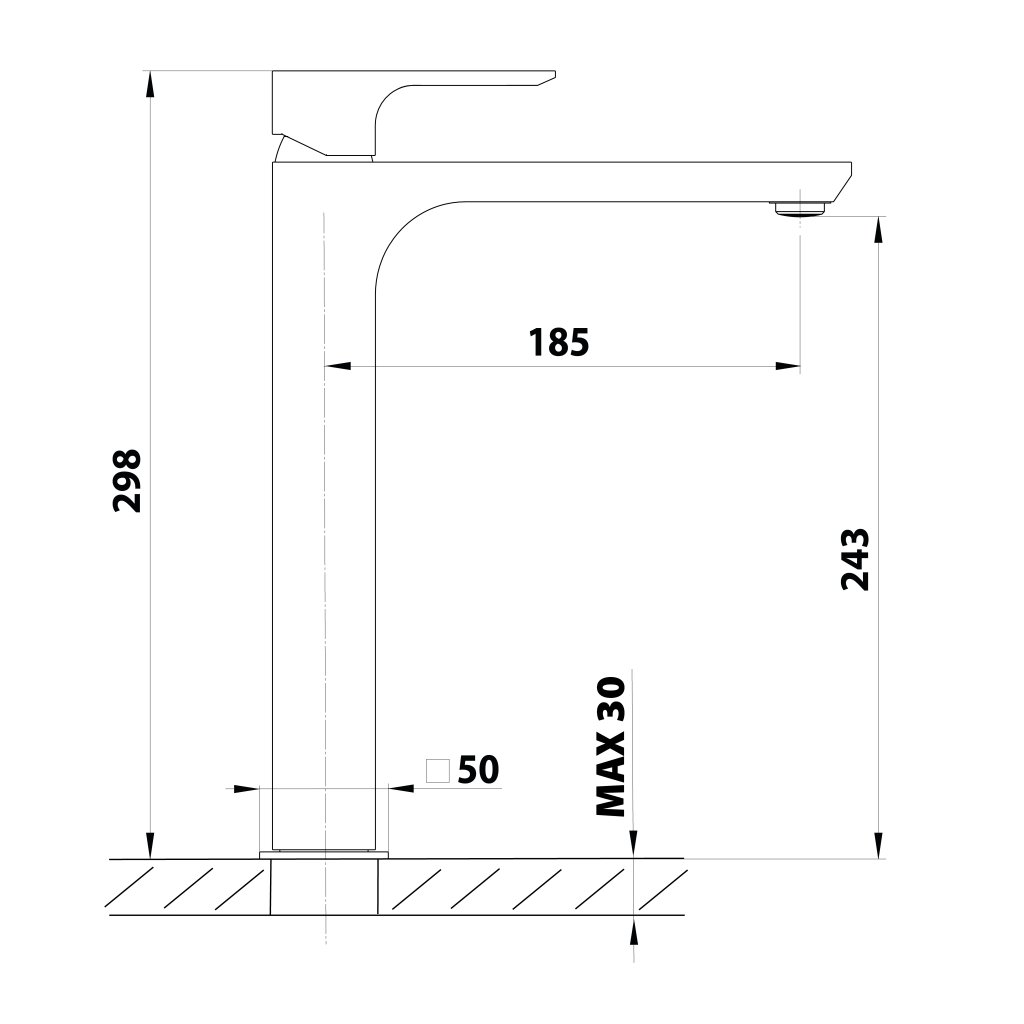 Szabadon álló karos mosdókagyló csaptelep magasan, meghosszabbított kifolyóval