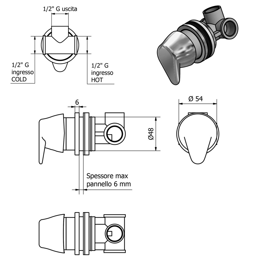 Karos keverő / fürdő élkapcsoló, 1 vagy 2 kimenethez