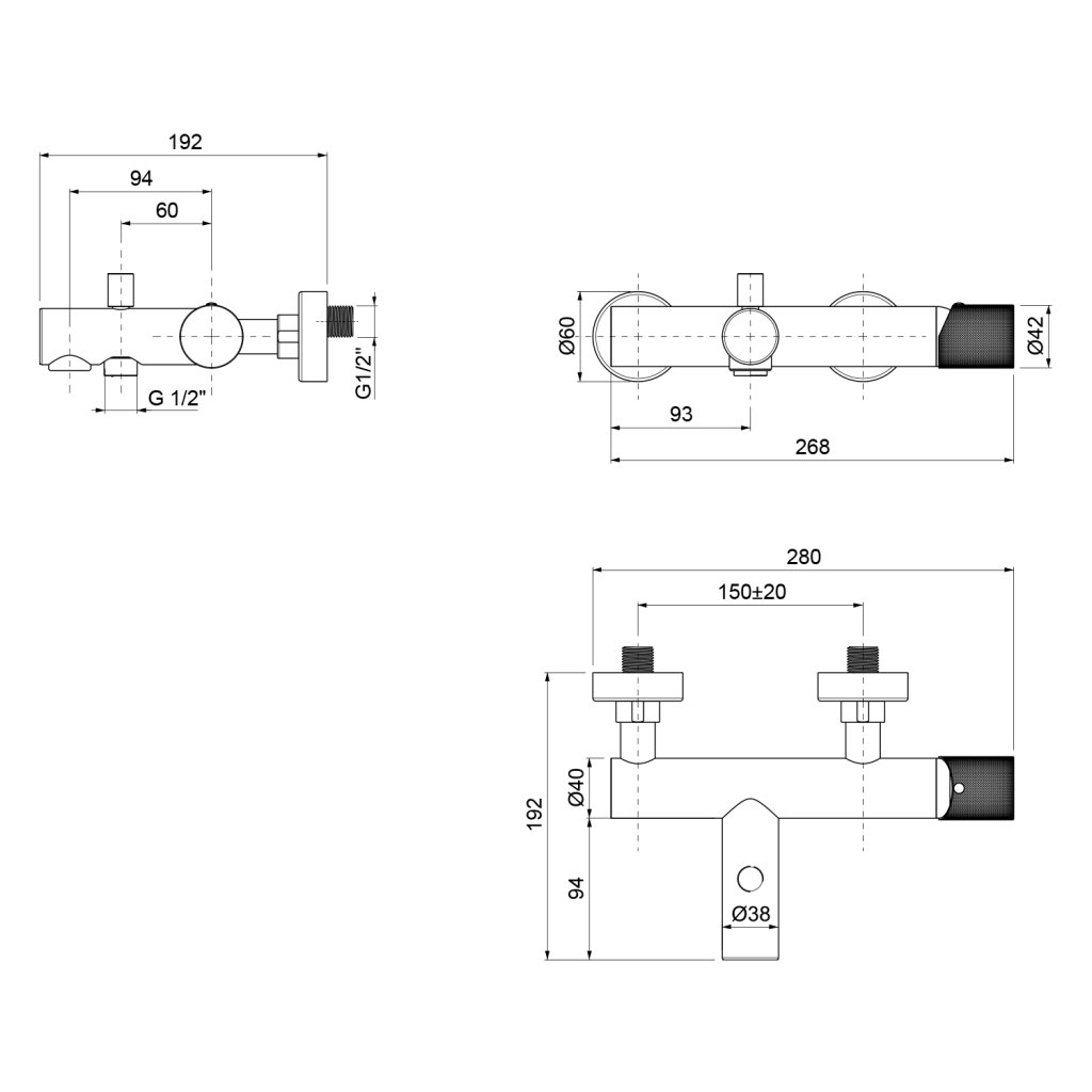 | Telepítés: | Fali, 150 mm |