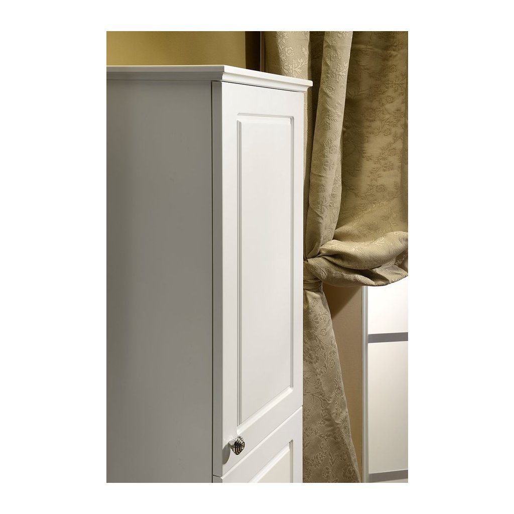 A VIOLETA VINTAGE stílusú szekrények műanyag díszítéssel a fiókokon és a testen, SWAROVSKI kristály fogantyúval kiegészítve, fehér félfényes kivitelben készülnek.