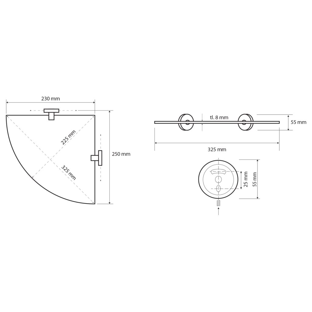 Sapho, X-ROUND E saroküvegpolc sínnel 250x70x250mm, króm, XR605