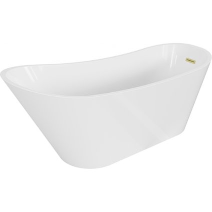 Mexen Volta, szabadon álló fali kád 150 x 75 cm, fehér-fekete, arany fényes túlfolyó, 51131507575-50