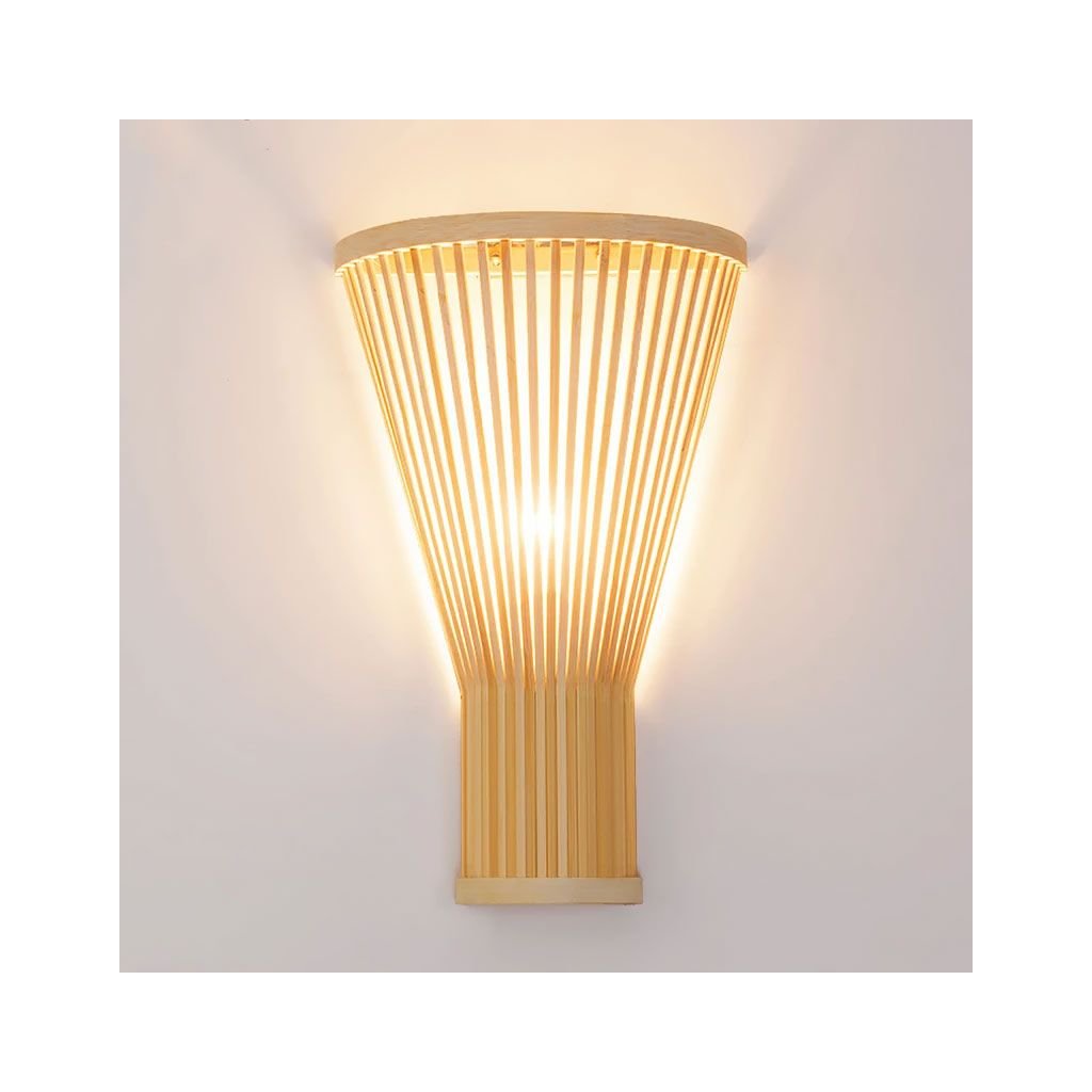 A lámpa bambusz lécekből készült. A természetes anyagok és a finom dizájn egyedülálló kombinációja felhívja magára a figyelmet és hangulatos légkört teremt. Egyszerű stílusának köszönhetően a fali lámpa bármely helyiségbe illeszkedik - legyen az hálószoba, nappali vagy gyerekszoba. A bambusz árnyékoló lágy, lágy fényt bocsát ki, amely kellemes hangulatot teremt a szobában.