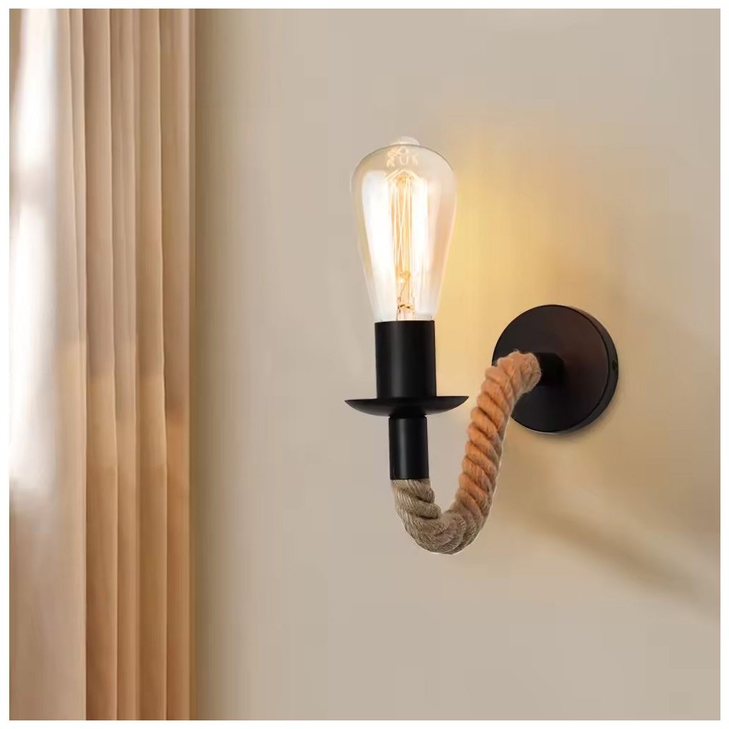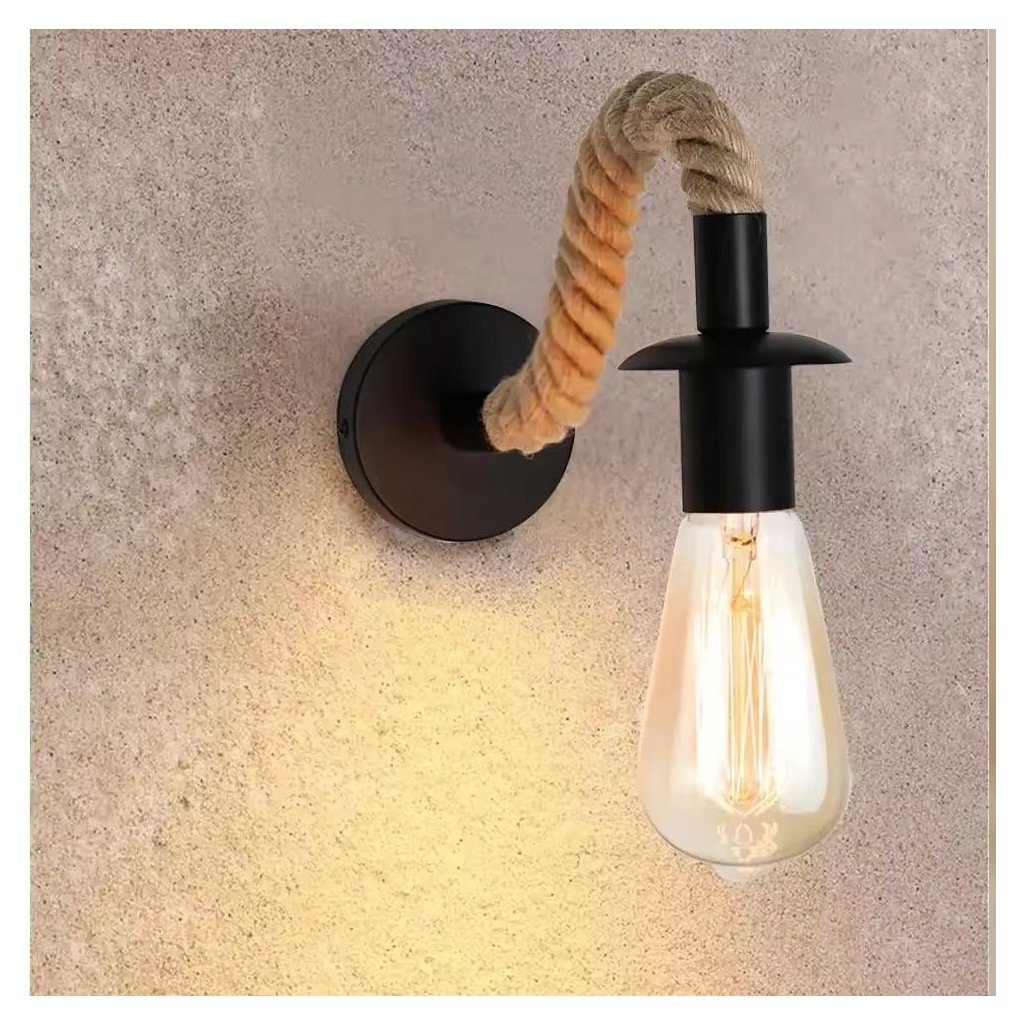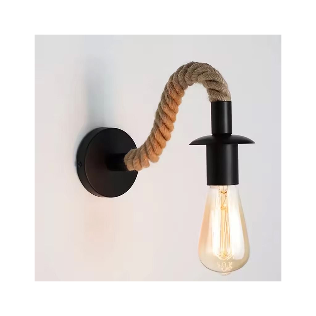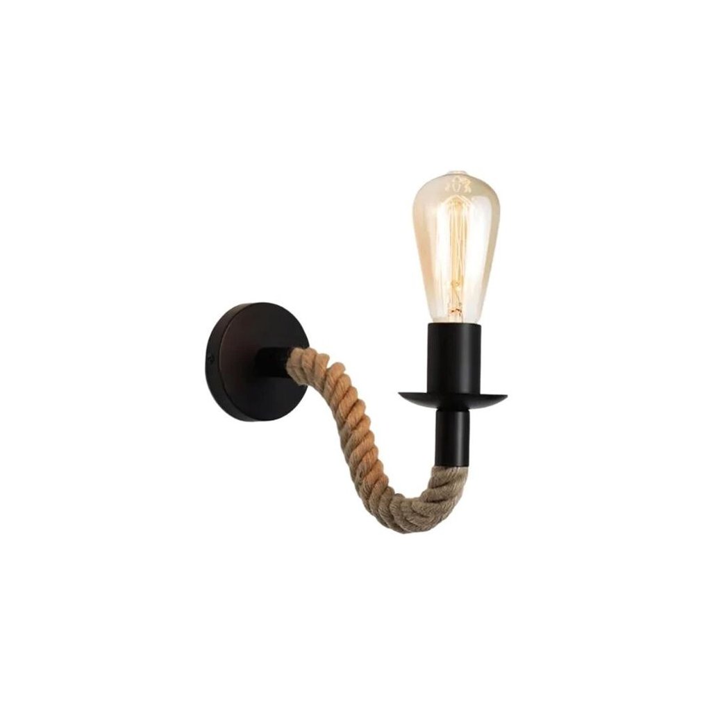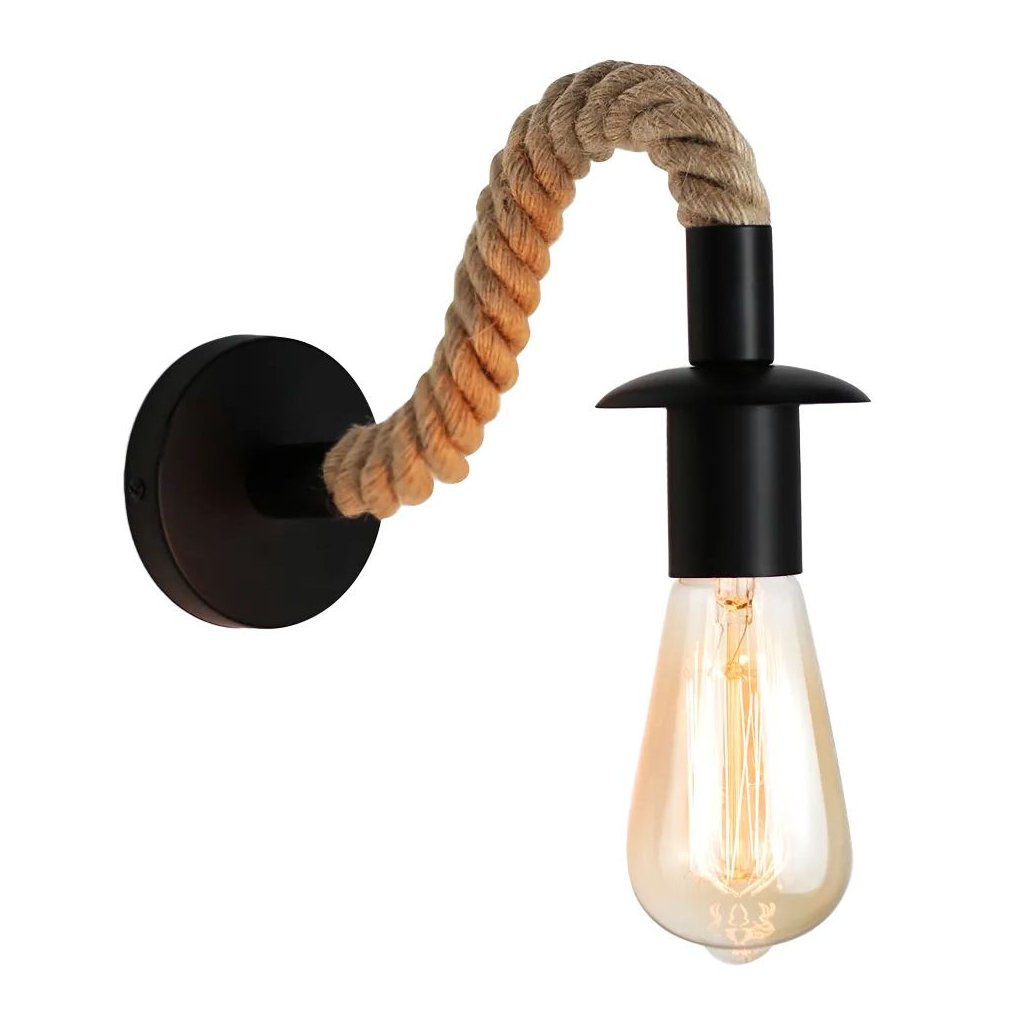 Ipari stílusú lámpa juta zsinórból és fémből. A természetes anyagok és a finom dizájn egyedülálló kombinációja felhívja magára a figyelmet és hangulatos légkört teremt. Egyszerű stílusának köszönhetően a fali lámpa bármely helyiségbe illeszkedik - legyen az hálószoba, nappali vagy gyerekszoba.