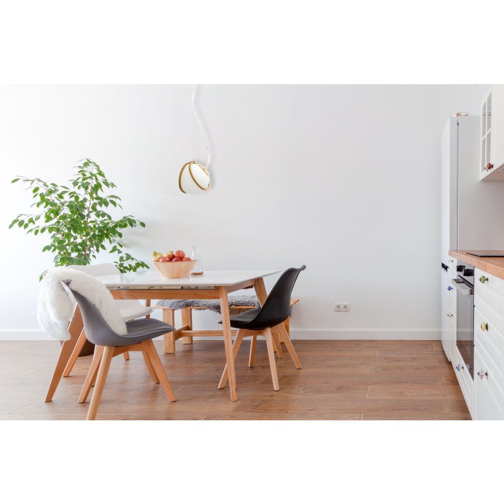 Az egyedi megjelenés nem zár ki semmilyen elrendezést – az egyszerű stílusnak köszönhetően a lámpa bármilyen típusú helyiségbe, konyhába, nappaliba és gyerekszobába illeszkedik. Az eredeti megjelenést az üvegbúra és a lámpa érdekes formája adja.