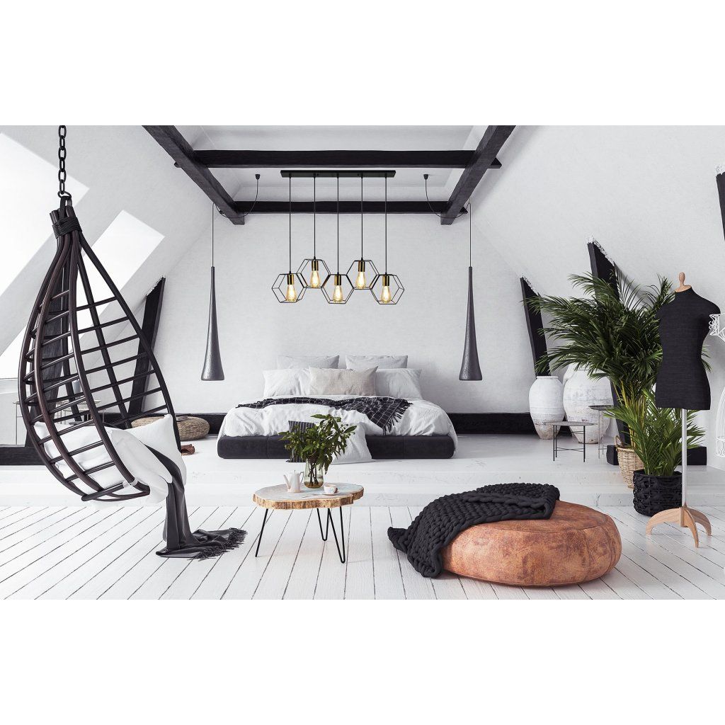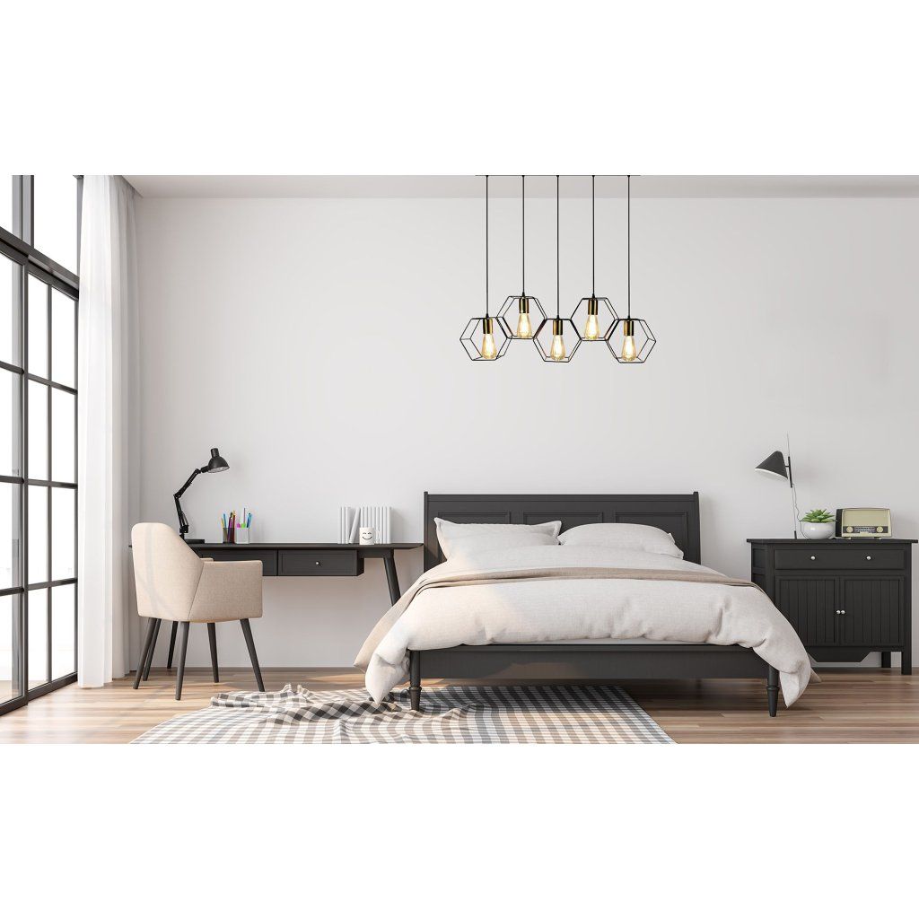 Szerszámlámpa, függőlámpa 5xE27 APP1133-5CP, fekete-arany, OSW-40005