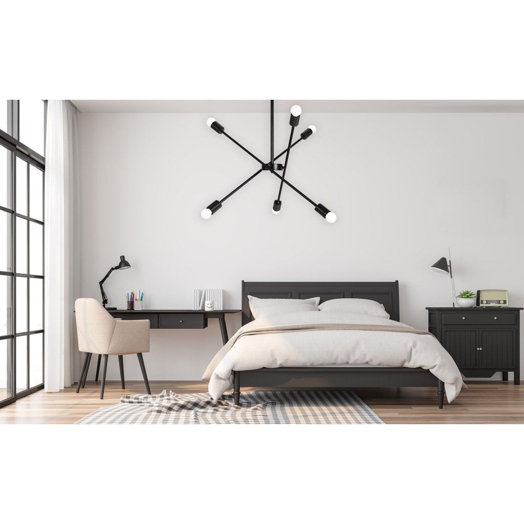 A lámpának 6 fénypontja van E27 menettel. Az izzó állítható karjai jelentősen megkönnyítik a fény beesési szögének egyéni igényekhez igazítását. A lámpa egyedi kiegészítővé válik - olyan dekoráció, amely mellett egyetlen vendég sem megy el közömbösen. Gyönyörű világítás lesz, amelynek köszönhetően kiemeli a kiválasztott helyet a nappaliban.