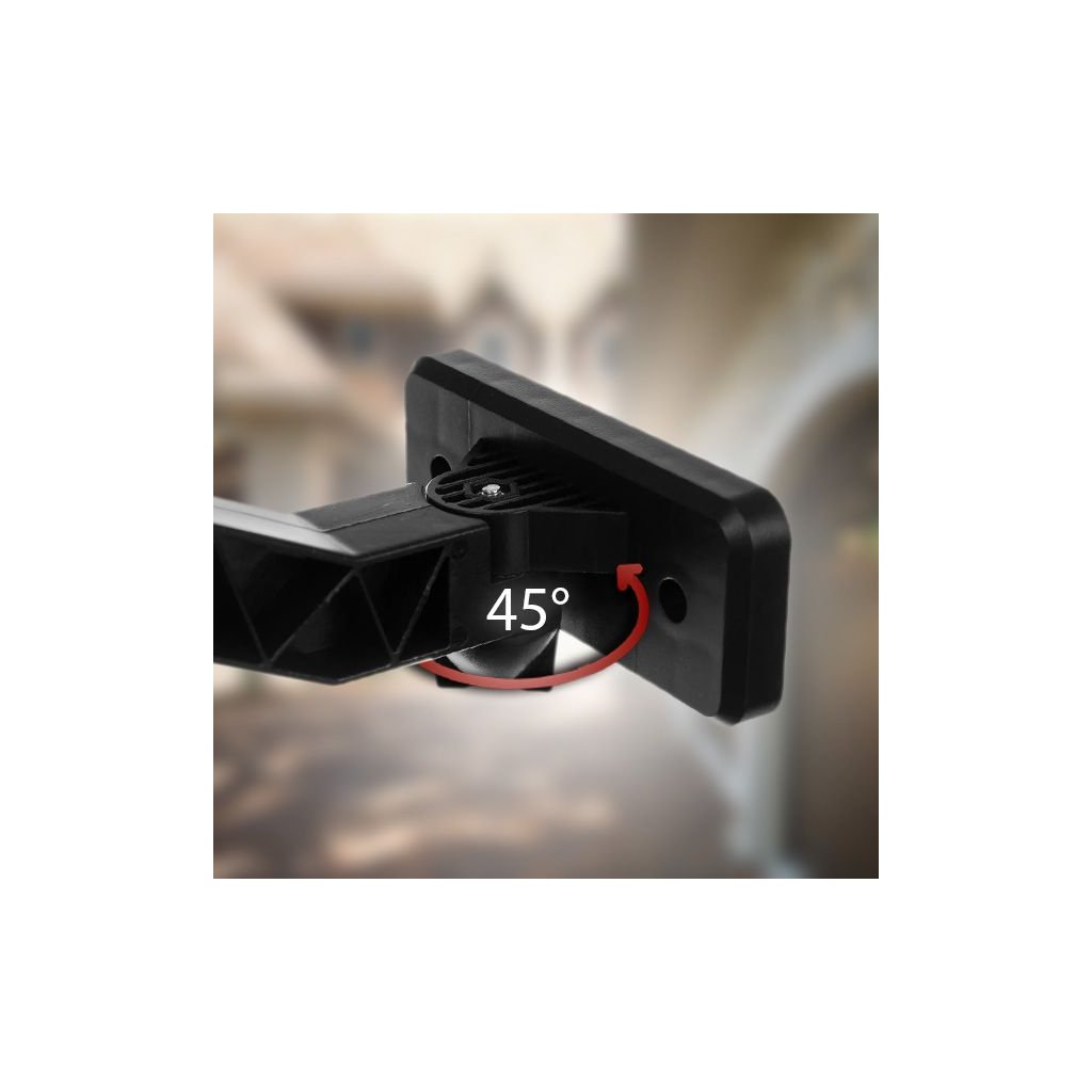 ⚙️ Fogantyúra van felszerelve, amellyel vízszintesen 45 fokkal és függőlegesen 60 fokkal állítható a dőlésszög. Ez lehetővé teszi a fény irányának pontos beállítását. Kompakt méreteinek és könnyű felépítésének köszönhetően a telepítés gyors és egyszerű.