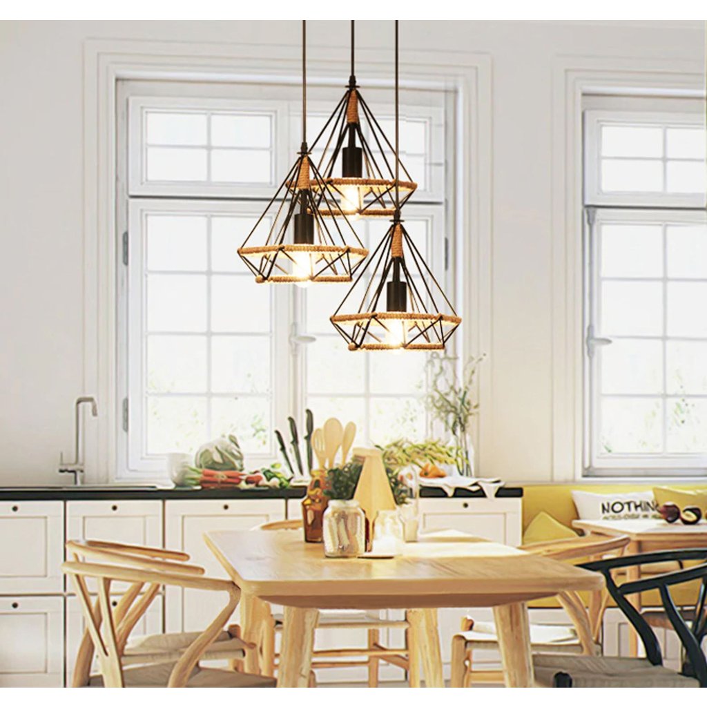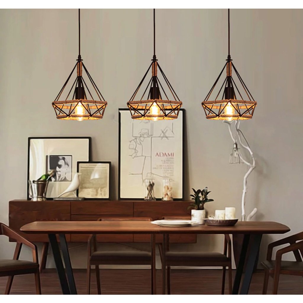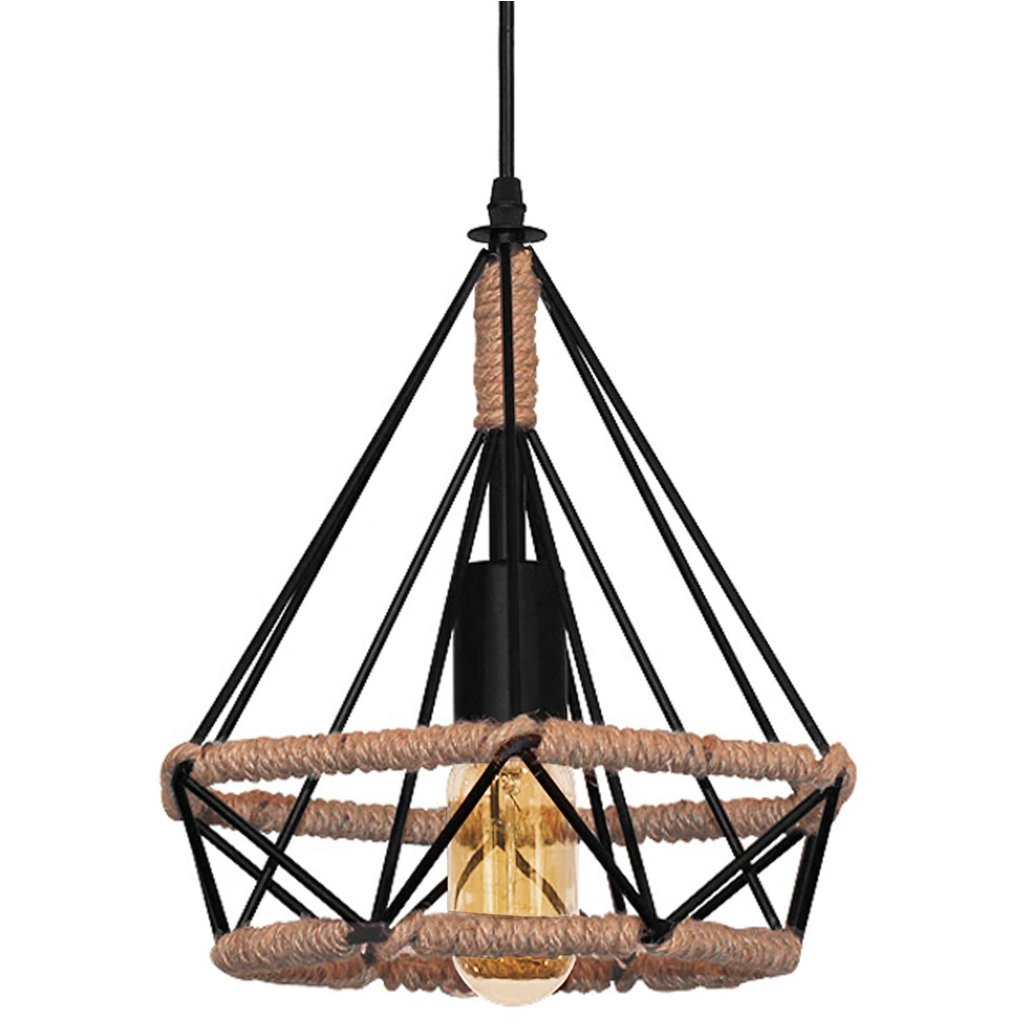 Szerszámlámpa, Mennyezeti lámpa, geometrikus, függő, loft stílusú kötélen APP678-1CP, fekete-barna, OSW-05644