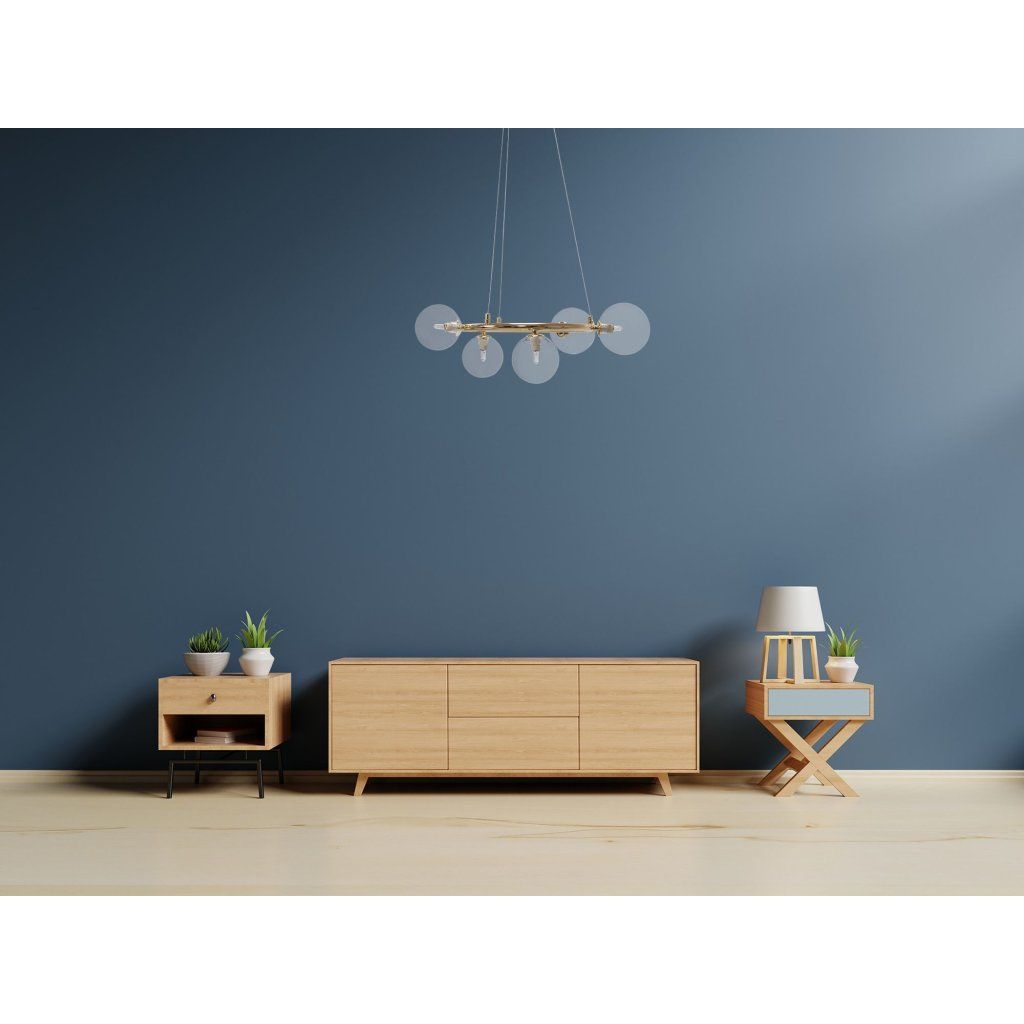 Szerszámlámpa, mennyezeti lámpa üveggolyók 5xG9 APP1158-6CP, arany, OSW-04690