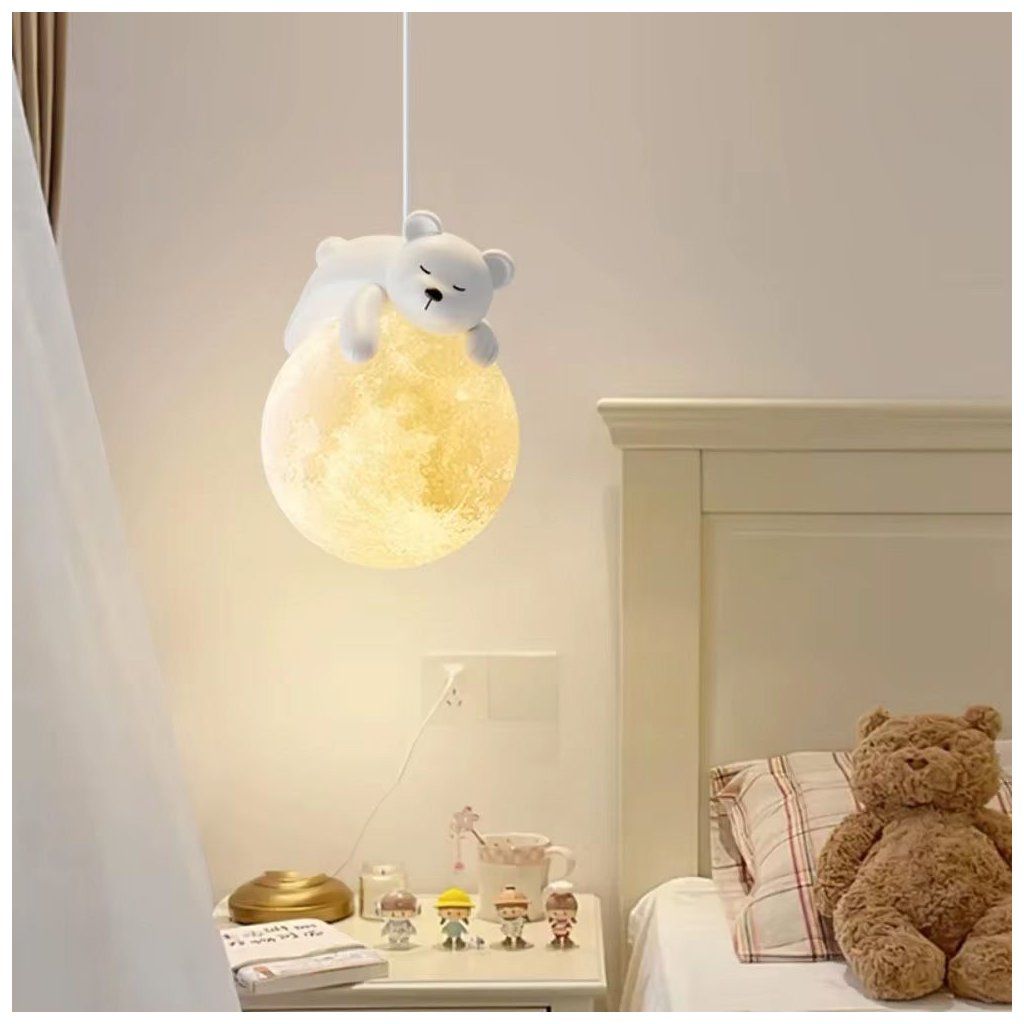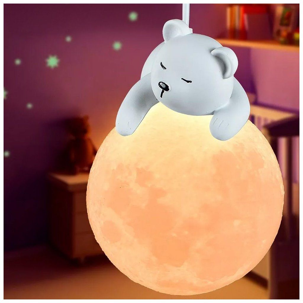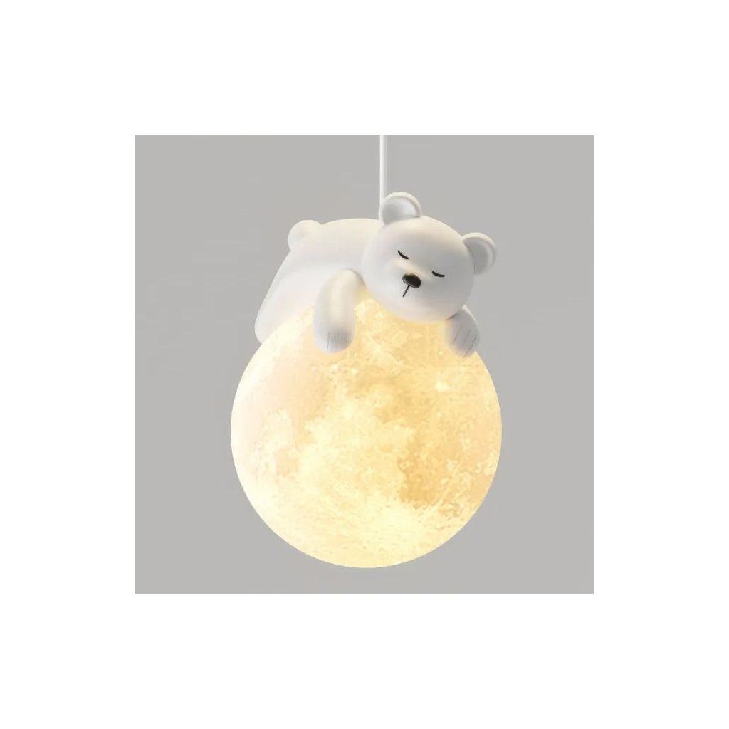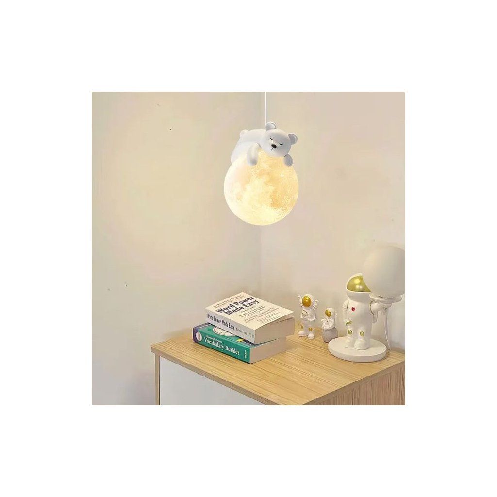 - Egyedi dizájn: Bájos lámpa hold alakú lámpabúrával és dekoratív mackófigurával, ideális gyerekszobába.